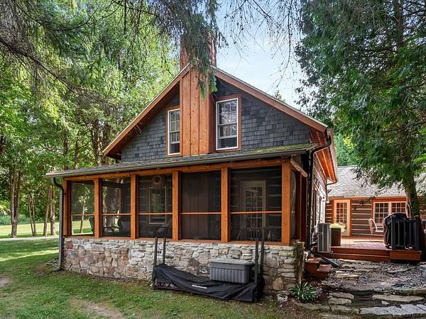 Est $3,515/moBuilt in 1854-55, this full-log home provides a natural coziness that only a log home offers. The surrounding wood walls emanate a natural warmth in color and composition. In 1910 an addition to the east side and a porch were added. First floor remodeled in 2004, all windows were replaced. Home totally re-chinked with Perma-Chink. Home is 1 1/2 stories, 2 bedrooms, 1 bath. Kitchen, dining area flow nicely to the living room and screened-in porch; large deck off dining area. Property is zoned residential and/or commercial. An accessory building, built in 1991, has 1363 sq ft including a loft area. Building offers numerous commercial possibilities! Property has a recorded pedestrian easement to Kangaroo Lake. Internet is Broadband.