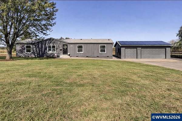 Est $3,020/moWelcome home! Fully remodeled inside & out, this 4 bed, 2 bath single-level home sits on 1.5 usable acres in Cascade School District! Modern farmhouse style w/ Mount Hood & Cascade views. LVP floors, quartz counters, updated cabinetry, new appliances, lighting, & two remodeled baths. Fresh paint, new concrete, 3-car garage with shop potential, RV space, leased Tesla solar, permanent foundation.