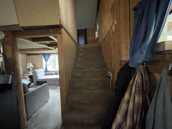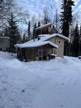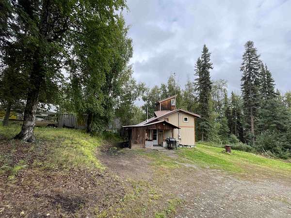Starter home located in the hills off Chena Hot Springs Road. Home has one bedroom, one full bath, and large laundry room, with two additional rooms in the tower for additional storage or home office space. Top tower room offers a great view of the yard and peaceful tree covered terrain to the east, it would make a great book nook. Just bring your imagination and creativity and with a bit of sweat equity you can make this your dream retreat. Layout offers open concept living and galley style kitchen. No lack of storage storage space in this small house. Home has had several upgrades to the insulation and the windows through the Interior Winterization Program. Many of the rooms are freshly painted. Stainless steel appliances. Newer woodstove and New Toyo stove. There is an additional room to the left of the main door under the covered porch for cold storage or can be a workshop. Wood shed can hold up to 5 cords of wood. The additional building on the lot is currently being used for cold storage. Large holding tank for water. This is minimalistic small house living at its best. Circular driveway for ease of access. Selling AS-IS.