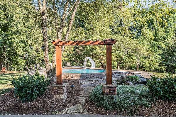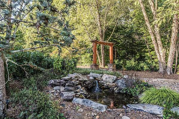 - Aggregate Walks, Basketeball Goal, Covered Front Porch, Exterior Lights, Garden Area, Landscaping, Mature Trees, Pond(s), Screened Porch, Storage Shed, Swimming Pool-In Ground, Trees