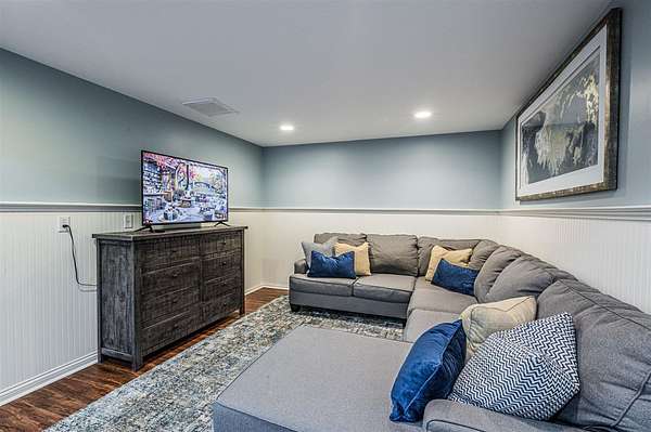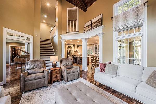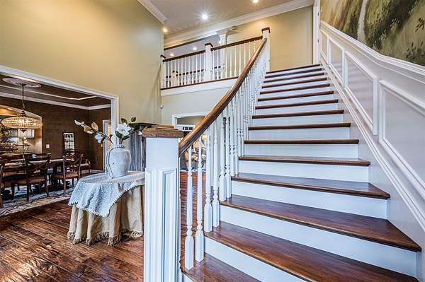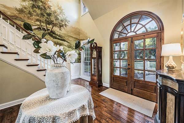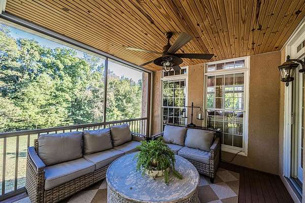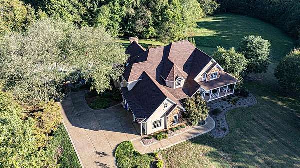 Custom-Built home on 8.45 acres with Barren River access. Stunning 5 bedroom, 5.5 bath custom home built in 2005, featuring a new roof (2023), fresh paint & carpet (2024), and low-maintenance Dryvit/stone exterior. Enjoy beautiful hand-scraped hickory hardwood floors, soaring ceilings, 3 fireplaces, a gourmet kitchen with custom high-quality cabinetry, large island, and farmhouse sink. The primary suite offers cathedral ceilings, his/her walk-in closets, and a newly remodeled spa bath (2024) with custom cabinetry, soaking tub, fireplace, and walk-in tile shower. Upstairs features 3 bedrooms (each with bath access), 2nd laundry room, and a potential 5th bedroom. Finished basement includes a gym, rec room, workshop, full bath, and tandem 2-car garage. Outdoor living shines with a saltwater pool (new liner 2025), screened porch, composite deck, pond, flagstone patio, basketball goal, and 8.45-acre lot with Barren River access. Also features an energy-efficient geothermal heating system and tankless water heater. Basement, first floor, and second floor square footage is estimated. Buyer to confirm. One or more photo(s) was virtually staged.