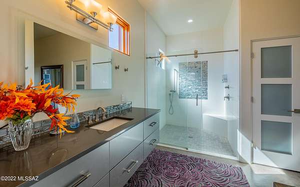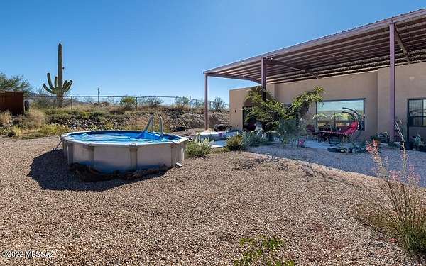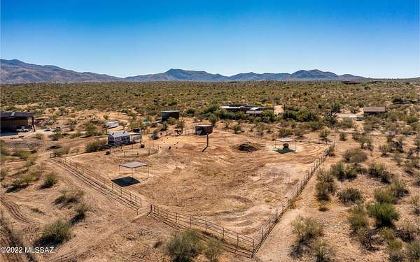 Sugarfoot Ranch - Where horses, a water buffalo and camel roam! 10 acres set in the scenic Sonoran Desert at the base of Rincon Mountains. Custom 3 bedroom Santa Fe home, built in 2019. Great Room, beautiful kitchen , 2 luxurious baths, large Laundry W&D incl. Custom doors, cabinets, floating vanities, quartz counters, and stained concrete flooring. Pella windows, Solatubes. H/W Heater 2025, Water softener 2024. Detached steel canopy over home preserves roof and provides shade over patios. Partially sunken, pool w/solar cover. Shed, Hay Shelter, Tack Rm workbench, W/D incl. Corral, 2 Pens, Birthing Stall, 3 Shade Shelters. Field, steel, and solar electric fencing. RV space. Private well. Close to hiking, biking, riding trails, AZ Trail, Saguaro National Park, Colossal Cave. Vail Schools