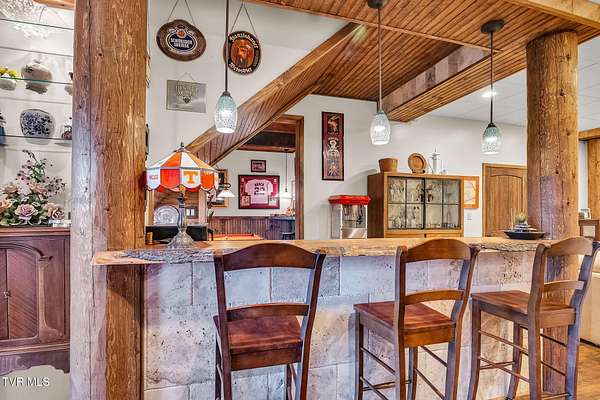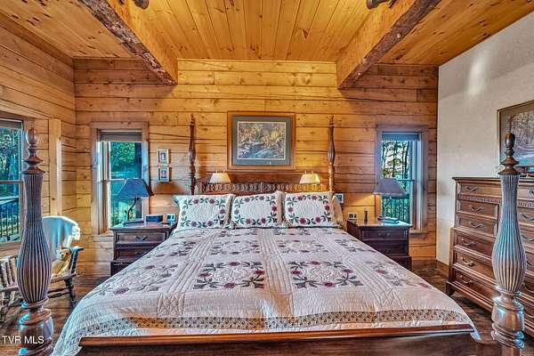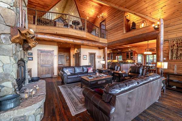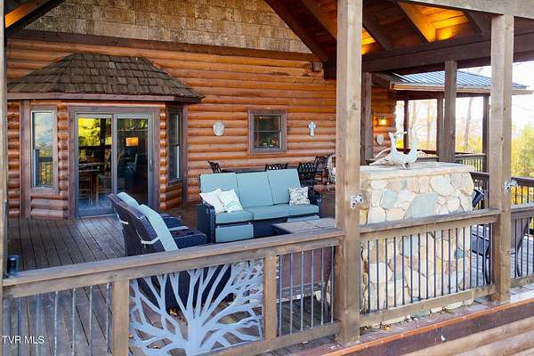 Perched high above the world, this extraordinary mountain estate offers views so breathtaking, even the most gifted photographer would struggle to capture. Every sunrise spills golden light across endless ridgelines, and every sunset paints the sky in hues that defy imagination. From your private perch, nature unfolds in panoramic splendor rolling valleys, distant peaks, and a horizon that seems to stretch forever. This is more than a home; it's a front-row seat to the sublime. Whether you're sipping coffee on the wraparound deck or stargazing under velvet skies, you'll feel like you've stepped into a living postcard only better, because you're in it. This one of a kind home shows you how luxury meets altitude at 3,900 feet above sea level. This stunning retreat boasts four spacious bedrooms and four and a half beautifully appointed baths, offering comfort and privacy for all. Step into the heart of the home a breathtaking great room with soaring cathedral ceilings and a two-story stone fireplace that anchors the space with warmth and grandeur. Whether you're hosting lively gatherings or enjoying quiet evenings by the fire, this room is designed to impress and inspire. Every detail of this customized home reflects thoughtful craftsmanship and mountain charm, creating a haven where panoramic views and fresh alpine air are part of everyday life. Off the great room is the cook's kitchen which features a 5-Star professional grade gas range with six burners, griddle and double convection ovens. All is open to the dining and great rooms. Adjoining the kitchen is a butler's pantry/prep kitchen with large sink with disposal, wine cooler, freezer, butcher block countertops with abundant floor to ceiling storage. On the main level, step into the large primary bedroom en suite with a picture window framing the mountain views. The attached bathroom offers heated flooring, a wall mounted fireplace heater, two walk-in closets and oversized soaking tub and a walk-in shower with a bench. There is a powder room on the main level. The second level consists of two en suite bedrooms on either side of a loft living room. From the main level take the elevator to the lower level featuring a large recreation room with direct vent glass enclosed fireplace, a wet bar and a billiards room. Also included on this level is a bedroom en suite, a utility room with washer and dryer, a workshop, an office and 2 car garage. The outdoor living areas are vast with over 2000 square feet of covered porches and decks which wrap around the house on the main level. A large porch features a gas log outdoor fireplace and a 6-person hot tub in the sitting area with views on three sides. Just steps away from the house is a beautiful stone firepit with a seating area. When it comes to location this property is close to all, being only an hour away from Blowing Rock NC, Banner Elk NC, Abingdon VA, Whitetop VA, Johnson City TN, and the city of Bristol. It is even closer to Boone NC and Watauga Lake. So if you've ever dreamed of waking up above the clouds, surrounded by silence, serenity, and views that defy imagination this is your moment. Come see for yourself what no photo can capture and no words can truly describe. Your mountaintop escape is waiting where you had me at hello is best defined upon viewing.