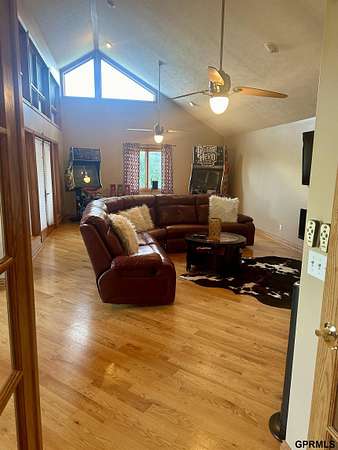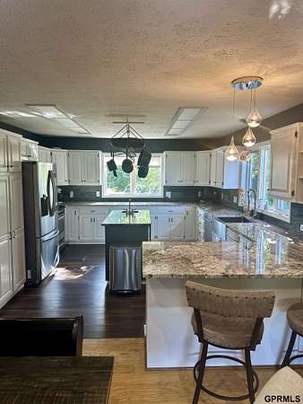 Large Updated Home on 10 Acres Just Outside Arlington on County Road 5 Spacious 5-bedroom, 4-bath home combining comfort and style. The main floor includes a half bath and a primary suite with a ¾ bath, walk-in closet, and stunning black granite floors, walls, and vanity. Upstairs features a ¾ bath with spa tub and granite tile, while the walk-out basement offers a full bath with tub and shower. The upscale kitchen has stainless steel appliances, a center island with sink and disposal, and abundant cabinet space. The open dining and living area includes both propane gas and wood-burning fireplaces, capable of heating the entire home. Enjoy three decks-two screened in-with views of Fremont and amazing sunsets The top level features a large family room or second primary suite with patio doors leading to an exterior staircase. A 5-car garage and 20x40 in-ground saltwater pool complete this exceptional property.