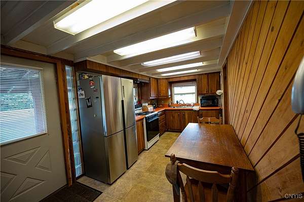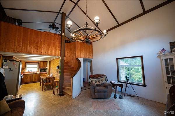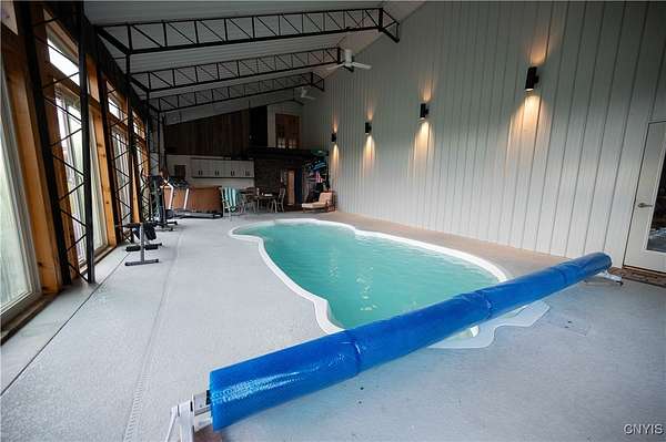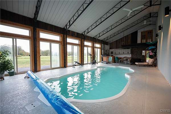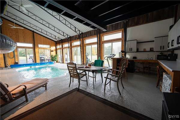Escape to your own private country retreat on 15+ acres in the serene foothills of the Adirondacks. This versatile property offers a rare combination of farmland, scenic beauty, and functional spaces for work and play. The centerpiece is a 42x80 steel building featuring a heated floor, pool, full bathroom, mini kitchen, and ample parking for several vehicles. It includes a fully stocked shop loaded with tools and equipment and offers potential as a horse barn with six 10x12 stalls-perfect for equestrian enthusiasts. A charming, quaint home completes the property with 1 bedroom, a dedicated office, and 1.5 baths, offering cozy living in a peaceful country setting. Nearly everything has been updated within the last five years, including the windows, exterior paint, epoxy roof, vinyl siding, water heater, septic, and furnace. The property also features two septic systems and an 8,000-watt generator that powers everything, ensuring comfort and convenience year-round. This turnkey property comes fully equipped-everything stays, from tools and equipment to furnishings, making it ready for immediate enjoyment. Outdoor enthusiasts will appreciate direct access to snowmobile and biking trails, and the close proximity to Delta Lake State Park and Woods Valley Ski Resort. Additional highlights include a riding mower, snow blower, and convenient location-just 45 minutes to Syracuse Airport, 15 minutes to Rome, and 5 minutes to Delta Lake State Park. Whether you're looking for a private getaway, hobby farm, or multi-use property, this home offers endless possibilities, modern upgrades, and true move-in-ready comfort in a peaceful country setting.