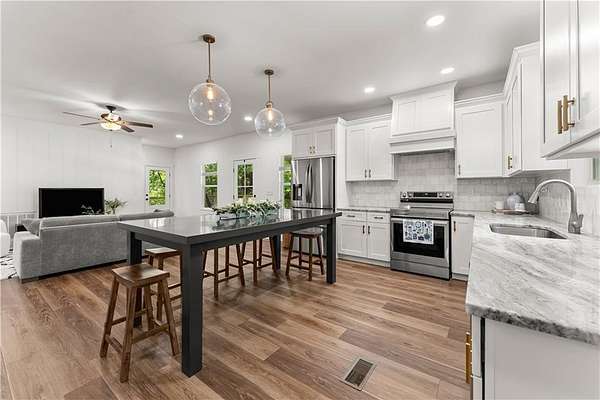 PERFECT STUDENT RENTAL, EXECUTIVE HOME, or MULTI GENERATIONAL LIVING SPACE. This better than new, uniquely styled, classically updated, customized farmhouse, on 1.7 acres, is in the city limits of Dahlonega, Ga. One of a kind home and is a true show stopper. Perfectly situated on a level knoll, surrounded by native foliage, with an expansive and level backyard, with lots of privacy. Perfect for large families.The 4 bedroom and 4.5 bathroom home is every homeowners dream. The front entry boasts a generous open concept living room, dining area, and chefs kitchen, complete with exclusive white cabinetry, granite countertops, new appliances, and a hand hewn farmhouse table. The table is counter height so perfect for extra counter space, family gatherings and entertaining. In addition, the owner has spared no expense in designing a must-see personalized butlers pantry and drop zone, just off the kitchen. An oversized owners suite is also located on the main level, just off the living area, complete with walk-in closet, and its own private en-suite bathroom. Venture upstairs to find 3 perfectly appointed, oversized bedrooms, each with its own private bath. The exterior is complete with Hardie Siding, wrap around porch, oversized carport, fire pit, and garden area. The entire home has been stylishly renovated and updated with new fixtures, accent walls, designer tile, luxury flooring, updated cabinets and countertops, fresh paint throughout, and new driveway improvements. This beauty is an entertainers dream with space for a workshop or pool. This home is MOVE IN READY and calling your name, don't delay.