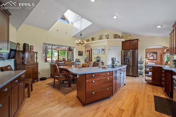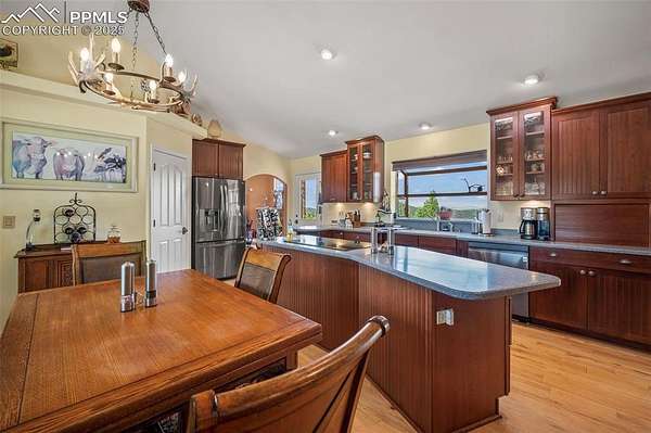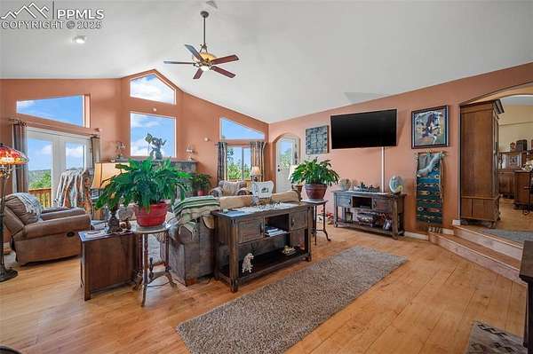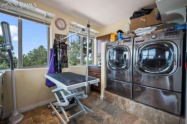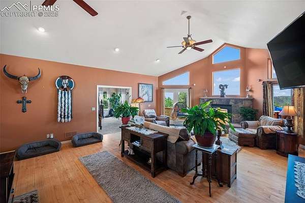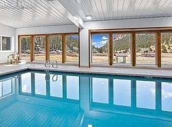 Welcome to your mountain oasis in the charming town of Cripple Creek! This stunning 3-bedroom, 3-bathroom home sits on 2.63 acres of meticulously fire-mitigated land, offering both tranquility and security. You'll be captivated by the breathtaking mountain views of Pikes Peak, Mt. Pisgah & the Sangre de Cristos that surround this exceptional property. The spacious & open floor plan creates an inviting atmosphere, perfect for both relaxation & entertaining. The heart of the home is the well-appointed kitchen, featuring modern appliances & ample counter space. The adjoining dining & living areas are bathed in natural light, offering a warm & welcoming space for family & friends. The master suite is a true retreat, complete with an en-suite bathroom & stunning views. Two additional bedrooms & bathrooms ensure plenty of space for family and guests. The second main floor bath has a Kohler jetted tub. There are also two gas furnaces for heating & a laundry room that serves for both pet grooming & laundry with a 55" commercial stainless steel bath. The kitchen sink has a 16" x 58 " bay window with great terrain & mountain views. Step outside to enjoy the numerous outdoor amenities this property has to offer. The 20x40 attached RV garage with work area provides ample space for vehicles & storage, while the additional 25x25 attached garage is perfect for any other toys. The RV garage also has an electric door opener to operate a 14X14 foot commercial door. The lighted patio & driveway add both safety & charm, making evening arrivals a breeze. The under-deck drainage & gutter system ensure that the outdoor spaces remain pristine. Stay connected with Teller Wifi, ensuring you can work or play from the comfort of your mountain home. As a resident of this community, you'll have access to an impressive HOA clubhouse featuring a full gym, indoor pool, tennis & pickleball courts & a pool table. These amenities provide endless opportunities for recreation & socializing.