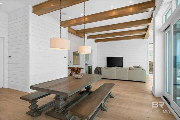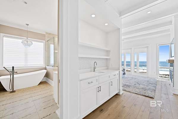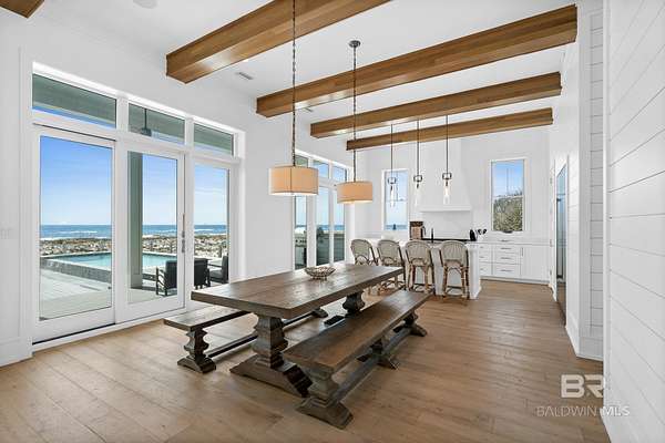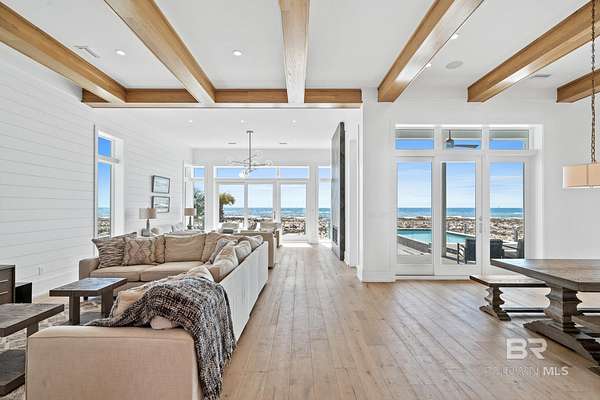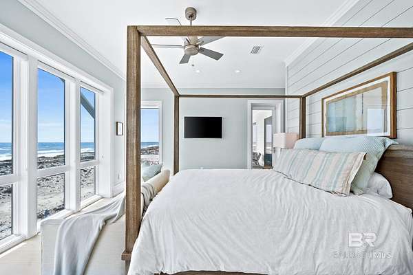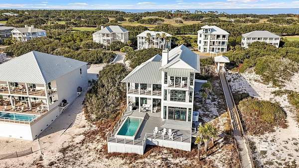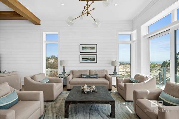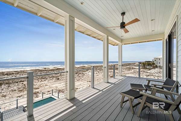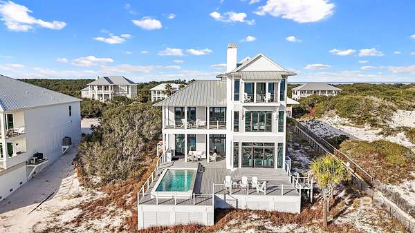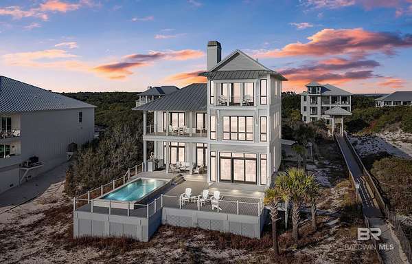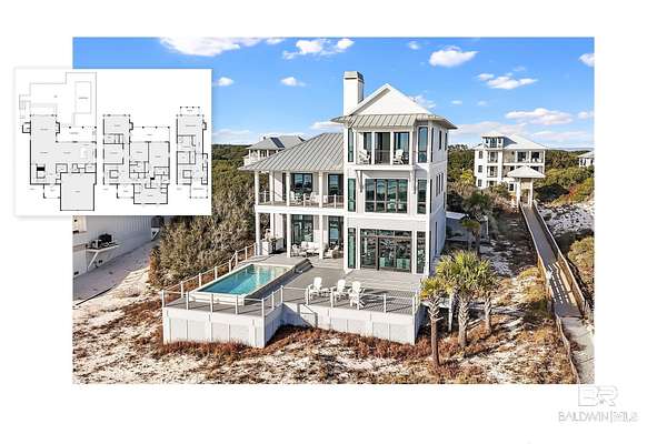 Kiva Dunes Gulf Front Home Turn Key and sold Fully Furnished. Dare to compare any other Gulf Front homes on the Gulf Coast. This remarkable Craftsman Cottage Designed by architect Sted McCollough and built by Denny Blume has far to many features to list all of them here but include: Brick Paved gated entry with retaining wall surrounded by amazing native landscape, Double Garage with louvered doors, direct 1st floor entrance to main living area with Lot elevations 20 feet above sea level in Flood Zone X, No Flood insurance required, main level open floor plan with hardwood floors throughout, beamed high ceilings, surround sound, antique brass lighting, large kitchen with island, Thermador 6 burner gas cooktop range with flat top option - double convection oven, Sub Zero Fridge and Freezer and large walk in pantry with built in shelving and draws. This main level living is a Sea of Light with multiple large doors and windows leading to massive open gulf deck with over 2000 square feet of lounging area to enjoy the sun and beautiful pool. Also an additional covered gulf facing balcony which includes built in outside grilling station. 2nd level has 3 gulf facing guest rooms with full baths, bunk room with full bath, media room with TV and sound bar plus covered balcony. The entire 3rd floor master suite floats over the Gulf with large bedroom and seating area, master bath with soaking tub and walk in shower with multiple shower heads, double vanities and walk in closed with built in wood shelving. There's also a large covered Golf Course facing deck. Many other features to this brilliant home. The different custom crafted lighting throughout the home will truly amaze. Home includes a private elevator, 2 different laundry rooms, multiple owners closets and more. Established rental income with Kiva Dunes Properties " The Salty Sol " is a gulf front home not to be missed. Find your Kiva today and begin enjoying a lifestyle unrivaled on our Gulf Coast. Buyer to verify