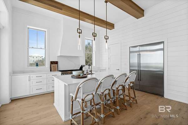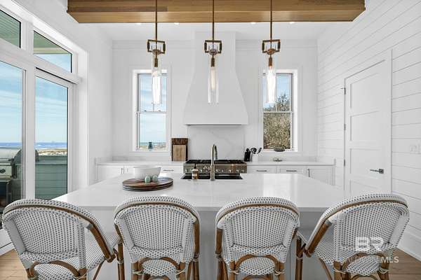 - Automatic Garage Door, Built-In Gas Grill, Bunk Room, Covered Patio, High Ceilings, Outdoor Kitchen, Outdoor Shower, Wet Bar, Window Treatments
