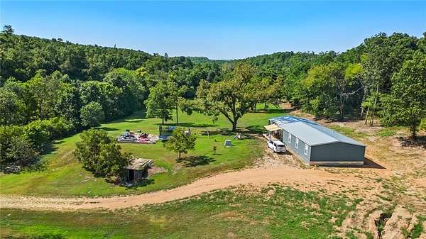 Retreat to the peace and quiet of the country with this newly built 4-bedroom, 2-bath home on 22 gorgeous acres just 15 miles from Siloam Springs and 30 miles to Fayetteville. Offering 2,432 sq ft (per CH), this spacious home features two living areas, a deck with stunning views, modern appliances, and a storm cellar for added peace of mind. The land boasts beautiful terrain with rolling ridges, creating a scenic backdrop and offering excellent elevation for hunting, hiking, or simply enjoying nature. Approximately 15 acres of mixed timber are teeming with wildlife, and a natural year around spring adds to the property's charm. Additional features include partial fencing, a second power pole, and a possible septic system--ideal for adding another dwelling or shop. Whether you're looking for a homestead, weekend retreat, or just some breathing room, this property delivers space, serenity, and opportunity. Also has whole home ventilation system. There is an RV hook up on site.