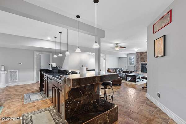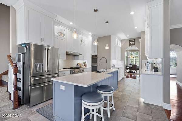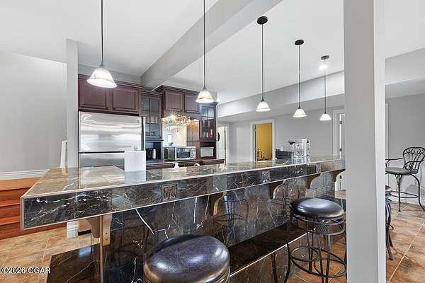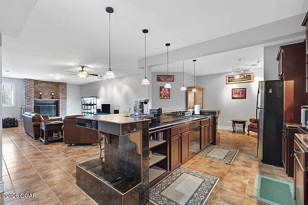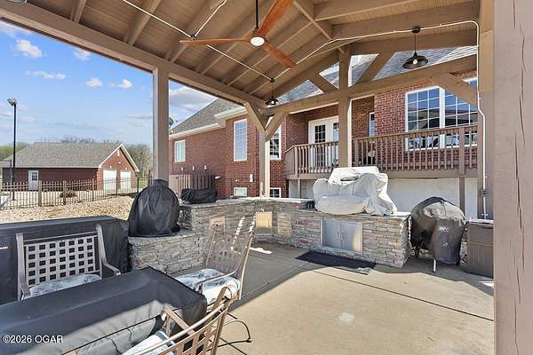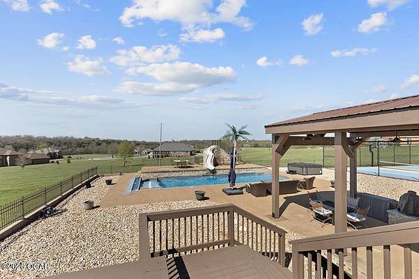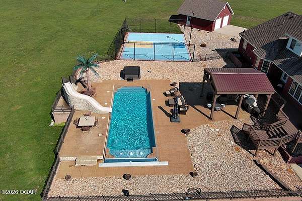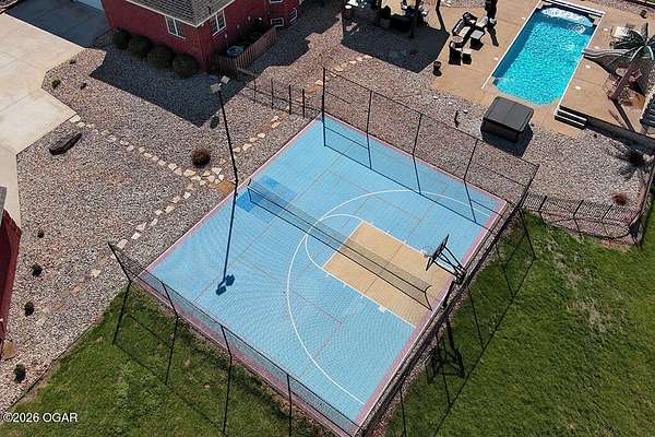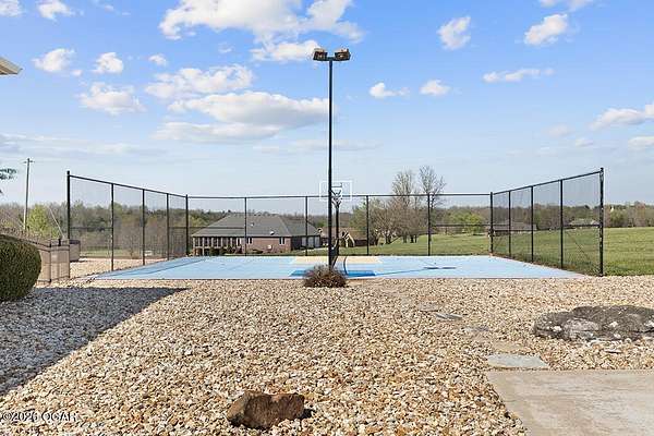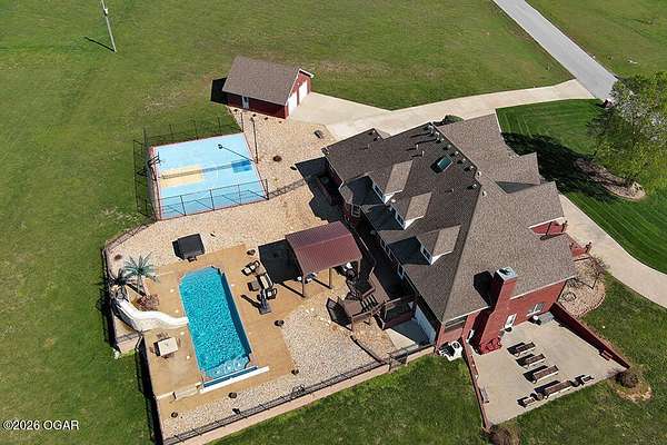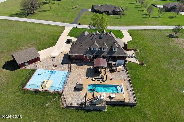 Experience the pinnacle of live-work-play luxury in this stunning 3.2-acre estate, perfectly situated to offer complete privacy and resort-class amenities. The backyard is a true entertainer's paradise, featuring a sparkling in-ground pool with a slide, a relaxing hot tub, and a professional-grade multi-sport court ready for pickleball, tennis, or basketball. Hosting is effortless with the custom gazebo and outdoor kitchen, while the oversized back deck and tranquil screened-in porch provide the perfect spots to overlook your expansive acreage. For the car enthusiast or eco-conscious owner, the property includes a detached garage outfitted with a Tesla electric vehicle charging station. Inside, the home has been meticulously updated, anchored by a completely remodeled chef's kitchen featuring elegant quartz countertops, a gas cooktop, double ovens, and a built-in microwave drawer. The highly desirable layout features a primary suite plus two additional bedrooms; one on the main level and one in the basement, that both include their own private ensuite bathrooms. The floor plan continues to impress with multiple living areas and a full walk-out basement designed for ultimate recreation. This lower level comes move-in ready for fun, featuring a dedicated media room with chairs, television, and surround sound all included, as well as a shuffleboard and pool table that stay with the home. Perfectly designed for the modern professional, the residence also offers multiple dedicated office spaces, including a basement executive suite hardwired with fiber optic internet for lightning-fast connectivity. This rare Willard gem combines the peace of the countryside with cutting-edge technology and unparalleled recreation.