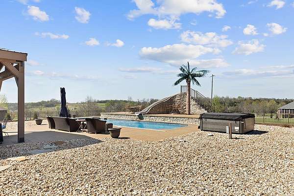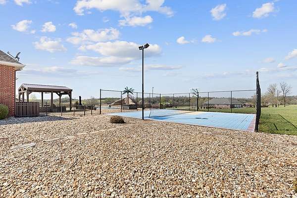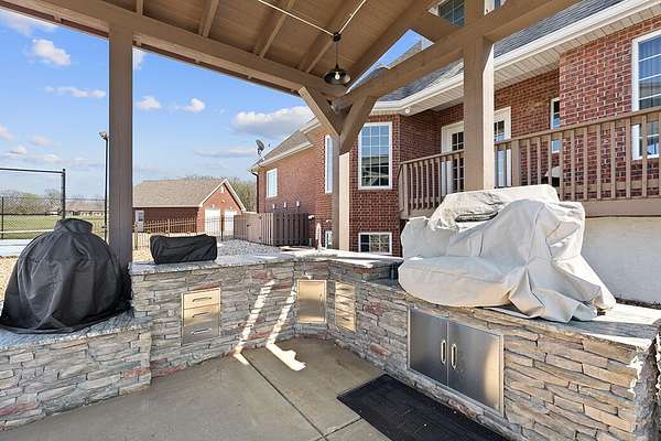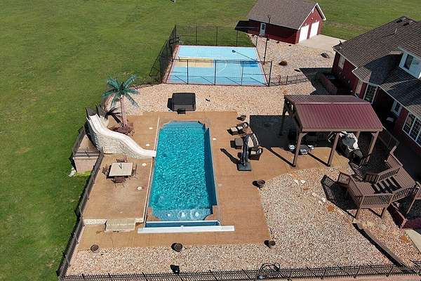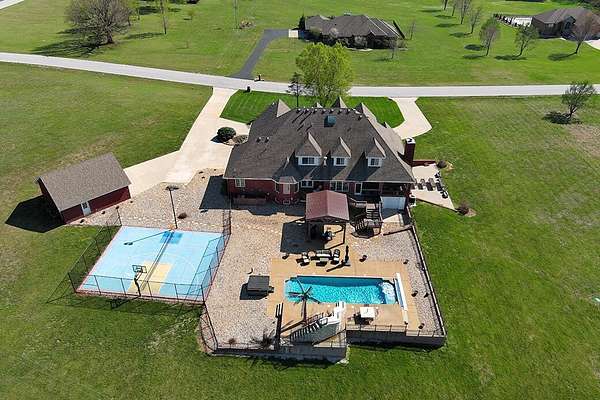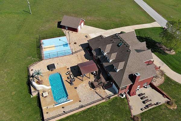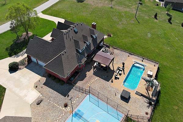 Experience the pinnacle of live-work-play luxury in this stunning 3.2-acre estate, perfectly situated to offer complete privacy and resort-class amenities. The backyard is a true entertainer's paradise, featuring a sparkling in-ground pool with a slide, a relaxing hot tub, and a professional-grade multi-sport court ready for pickleball, tennis, or basketball. Hosting is effortless with the custom gazebo and outdoor kitchen, while the oversized back deck and tranquil screened-in porch provide the perfect spots to overlook your expansive acreage. For the car enthusiast or eco-conscious owner, the property includes a detached garage outfitted with a Tesla electric vehicle charging station. Inside, the home has been meticulously updated, anchored by a completely remodeled chef's kitchen featuring elegant quartz countertops, a gas cooktop, double ovens, and a built-in microwave drawer. The highly desirable layout features a primary suite plus two additional bedrooms; one on the main level and one in the basement, that both include their own private ensuite bathrooms.The floor plan continues to impress with multiple living areas and a full walk-out basement designed for ultimate recreation. This lower level comes move-in ready for fun, featuring a dedicated media room with chairs, television, and surround sound all included, as well as a shuffleboard and pool table that stay with the home. Perfectly designed for the modern professional, the residence also offers multiple dedicated office spaces, including a basement executive suite hardwired with fiber optic internet for lightning-fast connectivity. This rare Willard gem combines the peace of the countryside with cutting-edge technology and unparalleled recreation.
