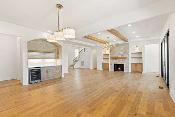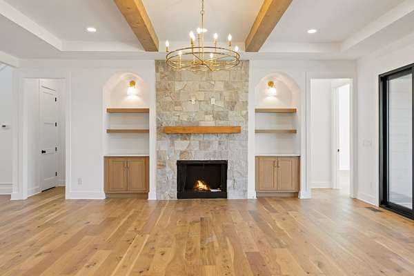 $15k in seller paid closing costs with preferred lender. Welcome to this stunning classic modern home that sits on just under 2 acres of land. Featuring 5 bedrooms, 4.5 baths, and a 3-car garage, this home blends functionality with timeless design. The main level features a spacious foyer with high ceilings, cedar beams throughout, a stone fireplace in the living room with built ins and a wood-burning fireplace on the covered back patio. The open kitchen features thoughtfully selected fixtures, a prep pantry with second sink and refrigerator space, a wet bar and tons of open shelving. Both the primary and guest suites on the main level have vaulted ceilings with cedar beams, with the primary featuring a massive walk-in closet with an island and a stunning primary bath with a soaking tub inside of the shower. Upstairs includes a spacious bonus room with a second wet bar, 3 bedrooms with each having access to a full bath. This beautiful home and private lot, are a perfect balance of craftsmanship, comfort, and modern style. Includes a 1-year build warranty.