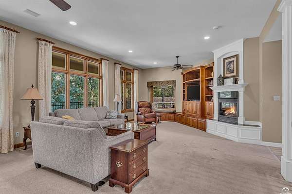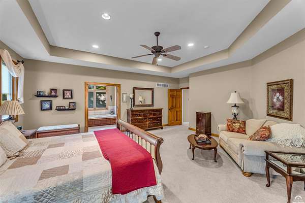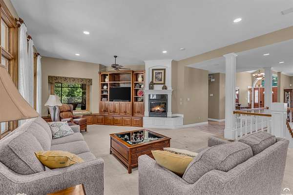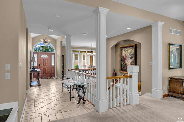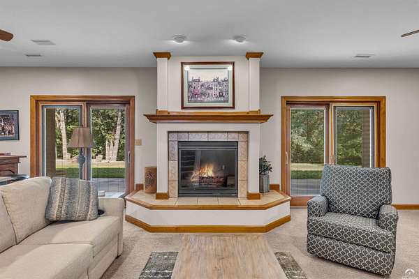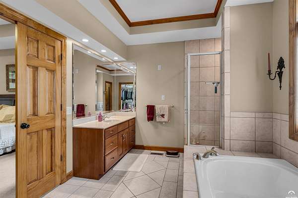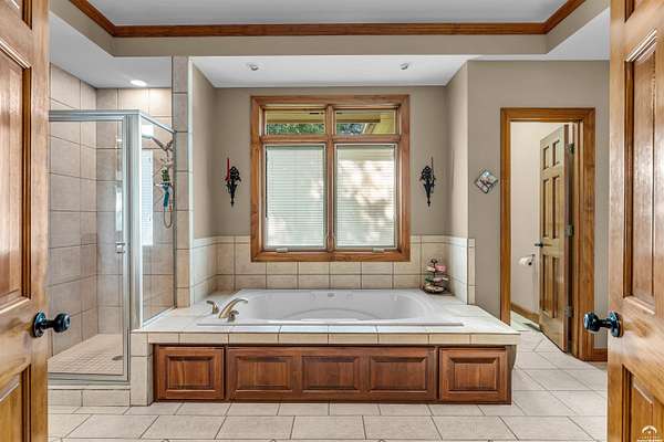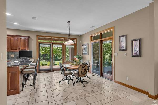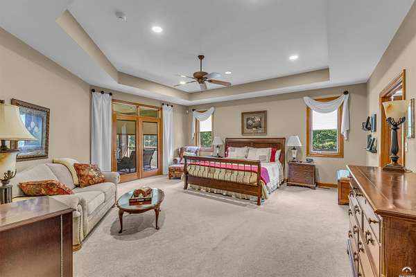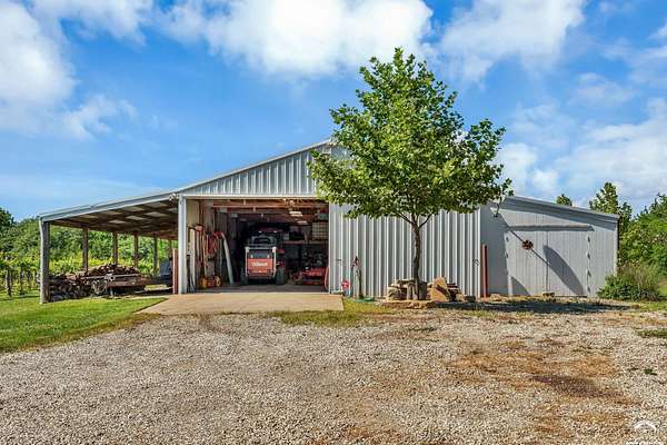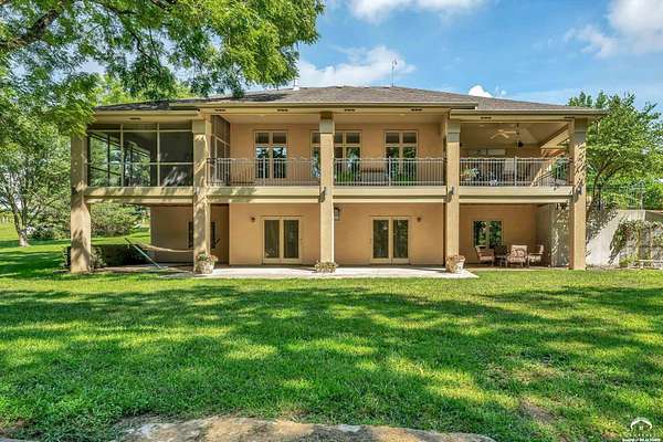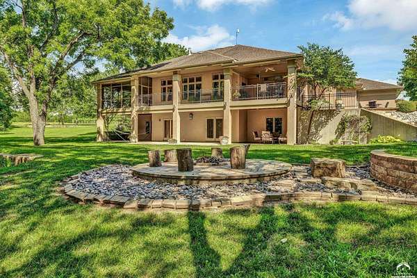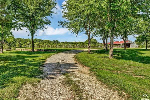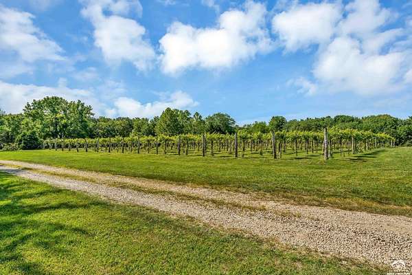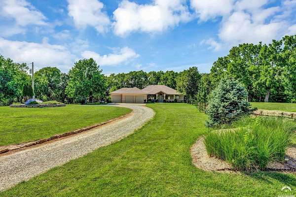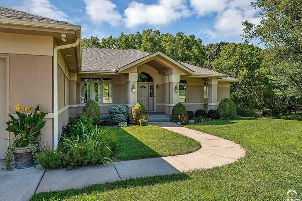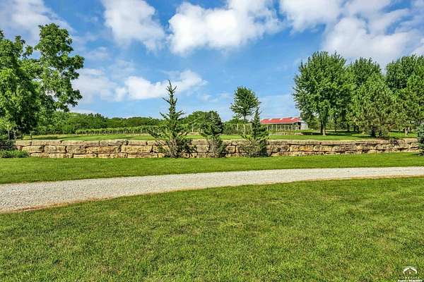 A rare country estate with a beautifully spacious sprawling ranch home on 25 acres of gorgeous, well-manicured land with exceptional, private wooded surroundings. All just minutes from the K-10 Bypass and Farmer's Turnpike in Lawrence. Experience the serenity and beauty of this countryside setting. It's a one-of-a kind property. Open plan, well-appointed spaces for living and entertaining. 4300 sq. foot home w/walk out basement, 3 car garage, plus Pole Barn & man cave. Custom designed and constructed home, quality finishes throughout. Main level expansive primary suite/bath/closets, screened in porch, gourmet kitchen w/ huge island, large eating area + formal dining room, perfect home for entertaining. Main level also offers mud room/laundry, private office, gorgeous views at every turn, large living room & entry. Walk out basement features multiple bedrooms/baths, wet bar, wine cellar and wine tasting room, large storage + storm room & warm and cozy large family room with fireplace. There is truly so much to offer, including a charming vineyard for anyone interested in continuing its operation - or simply just enjoy the setting. This extra special property offers a once-in-a-lifetime opportunity for its next lucky owner. Schedule to come see this fabulous property and opportunity to own your private oasis just minutes from Lawrence, Perry, K-10 and I-70.