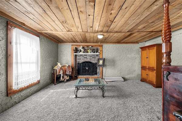 Outdoors, the amenities shine: a stocked pond sits near a cabin style man cave that feels like every outdoorsman’s dream hideaway. Enjoy summers around the impressive 14×40 concrete pool, complete with an outdoor fireplace- perfect for grilling and gathering.