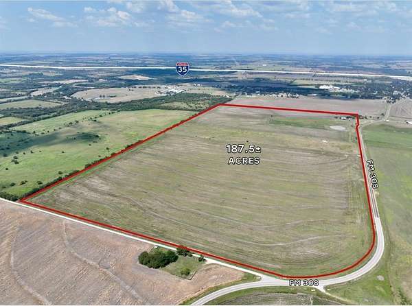 Est $24,560/mo187.5+- acres of land with an old farmhouse and a barn with thousands of feet of road frontage on S FM 308, located a mile and a half from Interstate 35. This property will serve as an excellent investment while simultanously allowing you to run cattle or grow crops. The farm is generally level with no trees, has no creeks or FEMA flood, and has no zoning restrictions. An Ag exemption is in place with minimal property tax implications. Site has co-op water and electricity on site. A new surveyed has been ordered but is not yet complete.