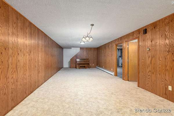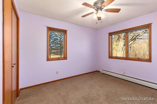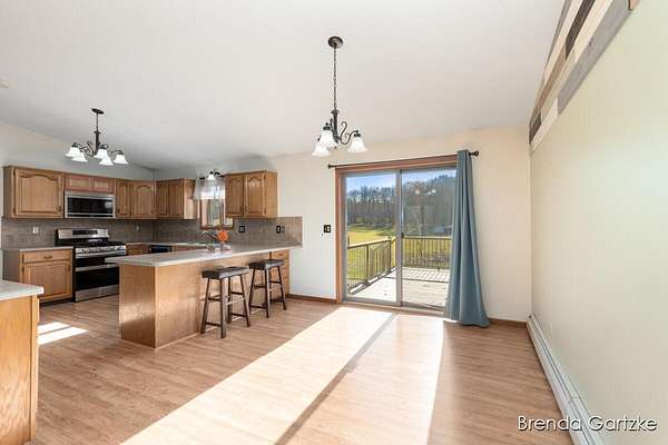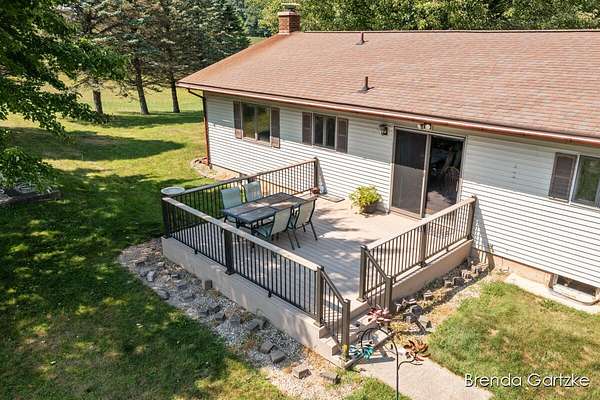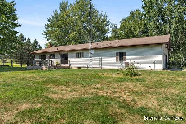 Experience tranquility in this delightful 3-bedroom, 2-bath Ranch set on 5 scenic acres. EFFICIENCY heating and cooling with dual mini split addition to the system. The home features an inviting open layout, with a bright kitchen equipped with stainless steel appliances & a pantry, seamlessly connecting to the dining area & a spacious living room, highlighted by a large window that floods the space with natural light. Retreat to the generous bedrooms, including a main floor primary, an updated bath featuring a luxurious walk-in shower. The lower level offers a cozy fireplace, a recreation room, & generous storage. Outside, enjoy a maintenance-free deck, lush fruit and shade trees, & three pole barns, one with horse stalls & a lush pasture that can adjoin. A frost-free hydrant in the stable & yard that enhances convenience. The insulated, finished garage that is wired for a heater and offers a raised 'drop room' for boots & coats. Embrace nature and wildlife in this perfect sanctuary