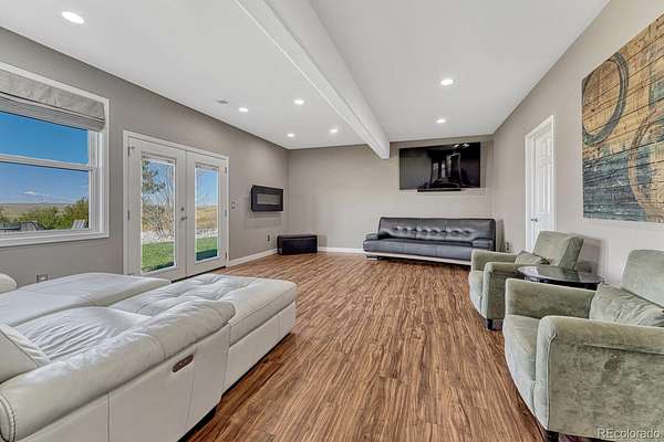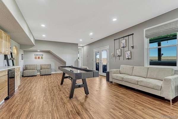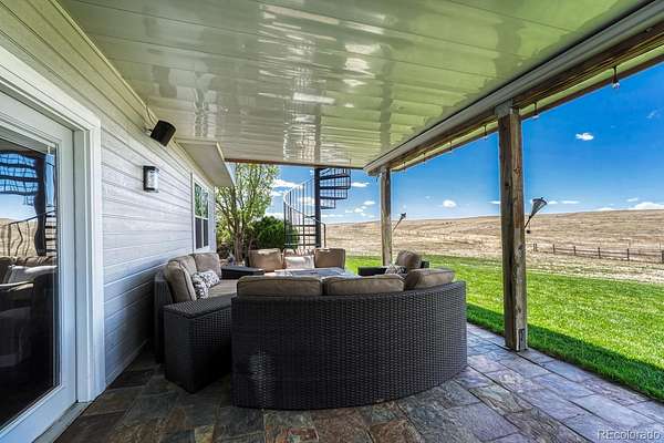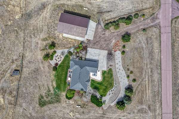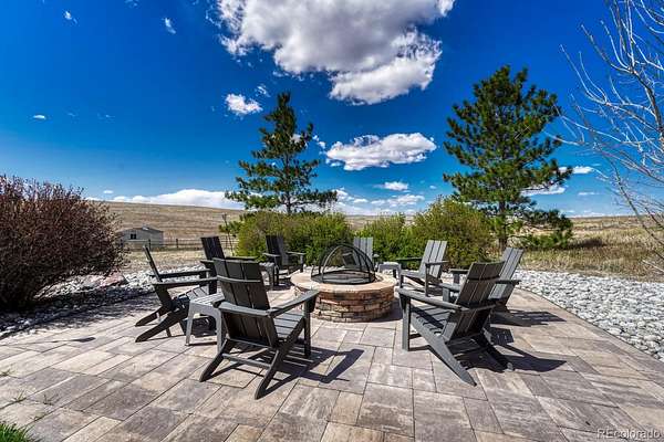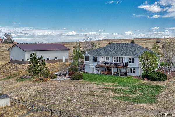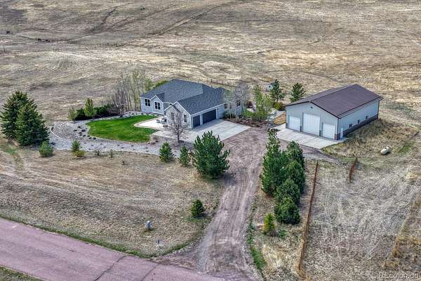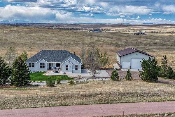 Welcome to a beautifully updated ranch home situated on 35 acres of wide-open Colorado countryside; where privacy, space, and freedom come together just minutes from the conveniences of town. Featuring a 2430 sqft, heated shop with ample vehicle and RV storage capacity. This thoughtfully designed property is tucked into the Foxwood Estates area 15 minutes north of the town of Elizabeth. It offers a rural lifestyle with room for family, guests, cars and critters. No HOA makes it convenient to do what you want with your own land. This truly is an oasis on the plains with rolling hills, fully fenced pasture, community bridle paths, wide-open skies, and gorgeous mountain views! The home features over 4,000 finished sqft with 5 beds, 4 baths, main floor office, updated kitchen, eat-in nook, stainless appliances, leathered granite counters, subway tile backsplash, separate dining room, primary suite with luxury berber carpet, bonus rm, gas fireplace, Italian-inspired 5-piece bath, soft close cabinets and drawers, tile surround, heated towel rack, free-standing tub, custom walk-in closet, and windows with views from every direction. The main floor showcases beautiful acacia floors, living room has vaulted ceilings, walk-out access to deck - provides a birds-eye view of entire property and beyond. The secondary bedrooms are adjoined by an updated Jack and Jill bath with private shower and commode. The bright and open, finished basement with 2 more bedrooms, a 4th updated full bath complete living/sleeping amenities in the home. A large gaming-style room, perfect for parties features a wet bar with more leathered granite counters and beverage cooler. Wine enthusiasts will love the 5x12 custom wine room with beautiful built-in racks; capacity of 1145 bottles. The separate theater room is wired for surround sound; theater chairs are included! Bonus/flex space opens to a flagstone patio w/hot tub also included. Seller retains mineral rights.