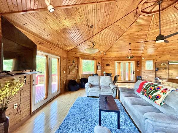 Discover your slice of paradise with this stunning 2-bedroom, 1-bathroom home for sale, offering a unique blend of nature and comfort on 25.90 surveyed acres w/ walking trails and a pond. Fully furnished, it's a dream come true for outdoor enthusiasts, with food plots, fruit trees, timber, a fully stocked pond, and abundant wildlife right at your doorstep. The property is unrestricted, giving you the flexibility to build additional structures or place Doublewides. The home boasts an open floor plan filled with natural light, creating a warm, inviting atmosphere. Whether you're a couple, a small family, or seeking a venue for guided hunts, this property is an ideal retreat. Looking for income potential? Consider transforming it into an Air BNB or hosting private hunts. The opportunities are endless! If you feel this enchanting home pulling at your heartstrings, reach out to your agent or contact us directly for more information. Don't miss the chance to own this one-of-a-kind haven!