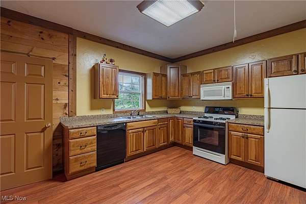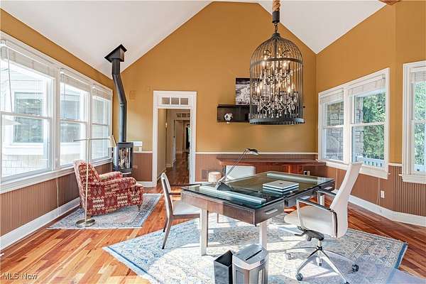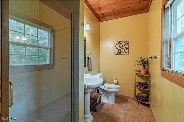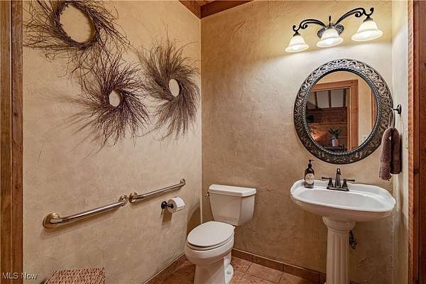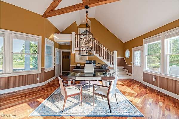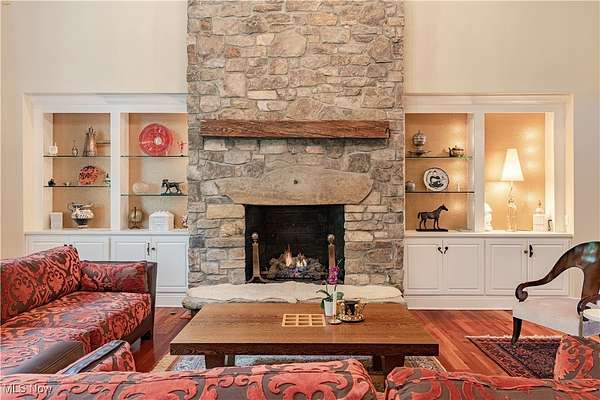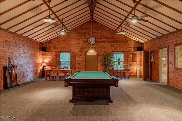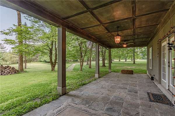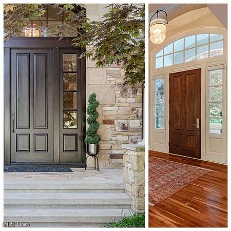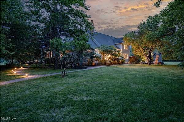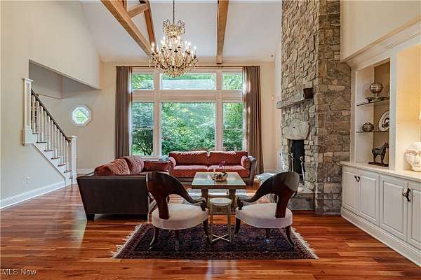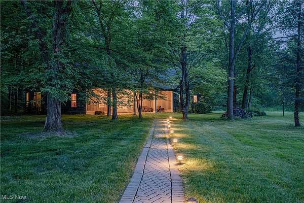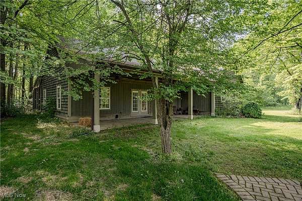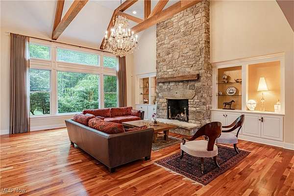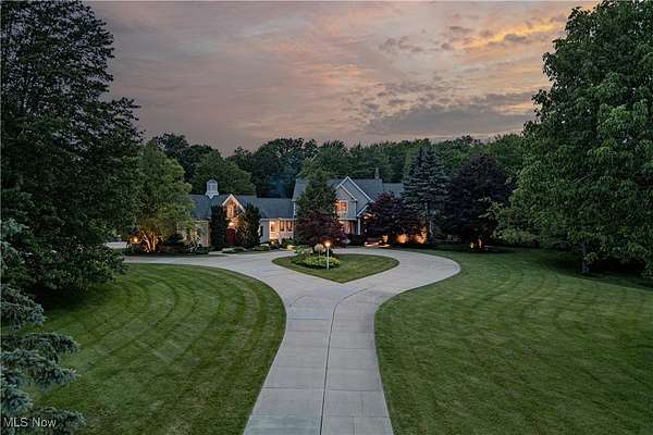 A Private Paradise on Over 13 Glorious Acres - Welcome to a breathtaking estate where timeless elegance meets the tranquility of nature. This sanctuary offers a rare blend of seclusion and sophistication. A sweeping circular drive leads to a gracious entry, where arched ceilings and gleaming cherry hardwood floors flow throughout the main level. Step into the soaring living room, where vaulted ceilings with exposed beams, a floor-to-ceiling stone fireplace, and a statement chandelier create an atmosphere of warmth and grandeur. A large picture window fills the space with natural light, creating a welcoming ambiance. The formal dining room, framed by a bay window, exudes charm and grace. The chef's kitchen dazzles with granite countertops, a center island, walk-in pantry, and a sunlit dining nook with sliding doors to the expansive patio-seamlessly blending indoor and outdoor living. The first-floor primary suite is a peaceful retreat, complete with vaulted ceilings, dual walk-in closets, and a spa-like ensuite with mosaic tile floors, soaking tub, dual vanities, and a step-in shower. A private sitting room/library opens to a secluded patio for added serenity. A two-story family room is flooded with light and features a cozy wood stove and a dramatic wrought-iron cage chandelier. A private suite upstairs includes a full bath and walk-in closet. Three additional bedrooms showcase unique architectural details-two connected by a Jack-and-Jill bath-plus another full bath on this level. The finished lower level offers a spacious rec room, kitchenette, and another full bath, ideal for entertaining or extended stays. Tucked away in the woods, a private guest cabin elevates the estate with a full kitchen, screened porch, expansive rec room, multiple baths, and a 2-car garage. Whether you're unwinding beside the tranquil pond, gathering fruit from your own orchard, or simply savoring the serenity, this exceptional estate is more than a home-it's your personal paradise.