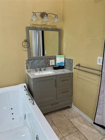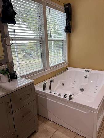 Big kitchen with farm style sink , Granite counter tops. Primary Bedroom has separate vanities. Shower and 2 person Jetted tub.