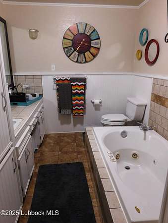 - Beamed Ceilings, Bookcases, Built-In Features, Cathedral Ceiling(s), Cedar Closet(s), Ceiling Fan(s), Chandelier, Entrance Foyer, Formica Counters, High Speed Internet, His and Hers Closets, Natural Woodwork, Soaking Tub, Tile Counters, Walk-In Closet(s)