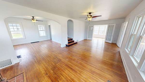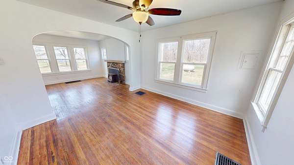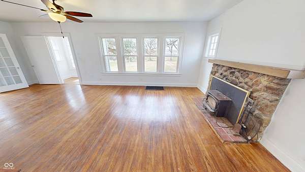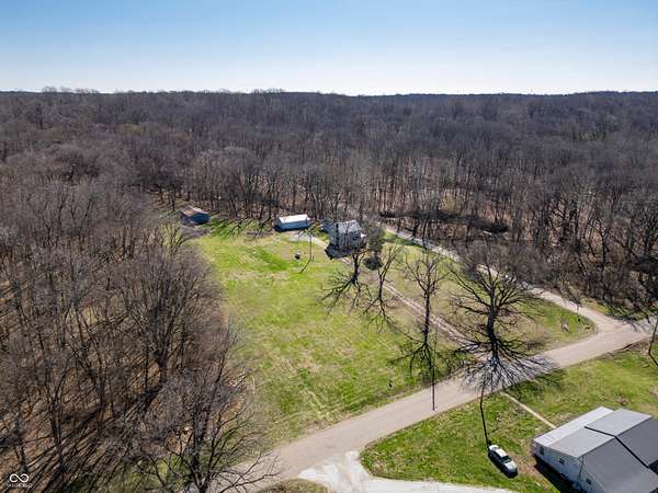 Tucked away on nearly 3 acres, this charming 3-bedroom, 1.5-bathroom home offers country-living at its finest. Upon entering, you're welcomed by a tastefully updated kitchen that flows seamlessly into a formal dining room, highlighted by beautiful hardwood floors. Just beyond, a spacious living room features a striking wood-burning fireplace adorned with unique river rock sourced from the Wabash River. The main floor also includes a newly added half bath and laundry area for convenience. Upstairs, you'll find 3 comfortable bedrooms and a full bathroom, with newer windows throughout that fill the home with natural light. Recent major updates provide peace of mind, including a brand-new furnace and roof (2025). The property also boasts three outbuildings: a barn, a 3-car garage, and a shed with durable 9-inch floors-perfect for storage, hobbies, or workspace. Don't miss your chance to enjoy the peacefulness and privacy this beautiful country property has to offer!