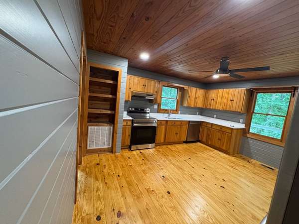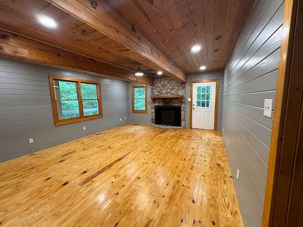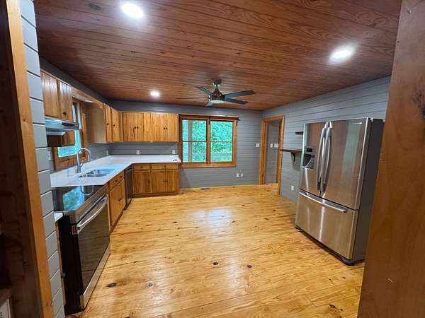 Est $2,790/moucked away on 15 peaceful acres, this charm-filled 4-bedroom, 2.5-bath farmhouse has been completely renovated while keeping its cozy, country character. The spacious front porch overlooks a quiet pond, the perfect spot for rocking chairs and morning coffee. The primary suite on the main level offers easy living, while three additional bedrooms and a full bath upstairs give plenty of space for family or guests. The heart of the home is the sunny eat-in kitchen, built for gathering and good cooking. A mudroom/laundry room keeps the mess at the door, and the heated/cooled outbuilding with power makes the ideal workshop, studio, or barn-style hangout. Come home to comfort, quiet, and wide-open skies.