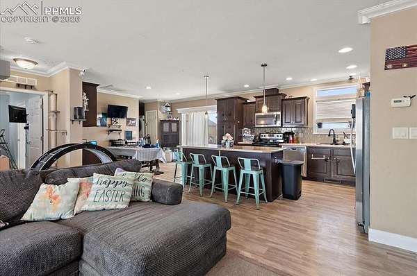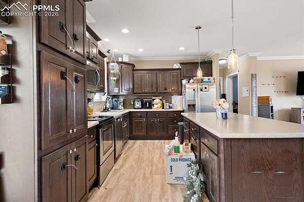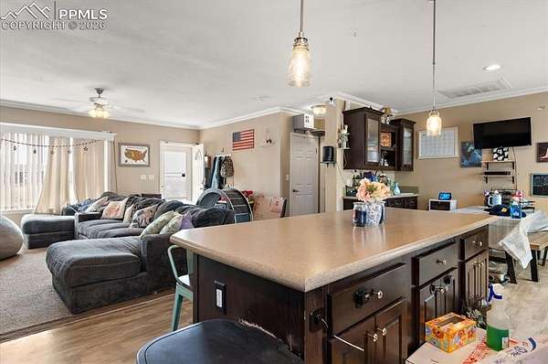 Experience wide-open space and Colorado views in this 3-bedroom, 2-bath home situated on over 3 acres just outside of Fountain. Conveniently located between Colorado Springs and Pueblo, with a quick drive to Fort Carson, this property offers the ideal balance of accessibility and quiet country living. Surrounded by expansive Front Range scenery, the setting delivers the kind of privacy and freedom that's hard to find. Inside, the home features an open-concept layout designed for everyday living, with a spacious kitchen that includes a large center island, modern cabinetry, and plenty of room to gather. Natural light flows through the main living areas, and a sliding glass door provides easy access to the outdoors and frames the surrounding landscape. While the home has a solid foundation and great layout, it offers an opportunity for a new owner to add personal touches and bring out its full potential. The property is well-suited for those needing extra space for vehicles, hobbies, or equipment, with both an attached garage and a sizable detached garage/workshop. There's also ample room for RV parking, outdoor recreation, or even horses. A fenced backyard adds additional functionality and separation from the open acreage. With scenic views, usable land, and room to make it your own, this property presents a unique opportunity for buyers looking to create their ideal Colorado lifestyle.