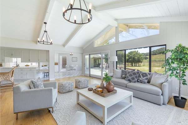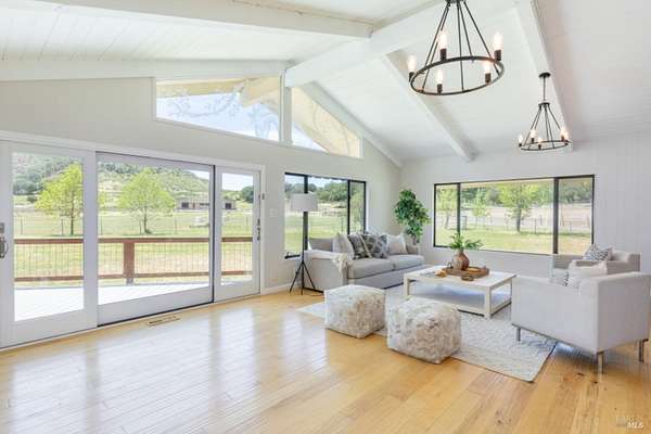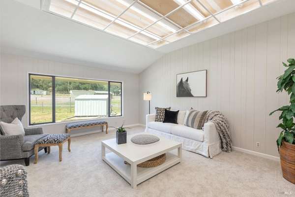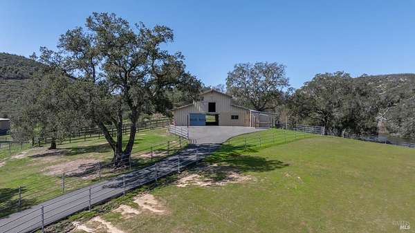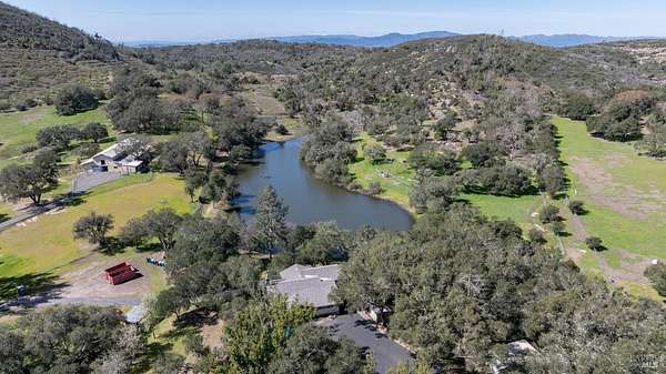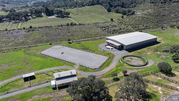 A rare opportunity to acquire a sanctuary in Wild Horse Valley. Welcome to a place where your vision can take root and your soul can breathe. Nestled in the peaceful hills above Napa, this approx. 30-acre ranch, two parcels offered together invites someone who dreams of wide-open space, connection to the land, and the freedom to create. Imagine an equestrian haven, fruit trees, garden, livestock, boutique vineyard, or a peaceful country lifestyle. The property features a 4BD/4BA main home with a large study/ office and 3-car garage, plus a charming 2BD/2BA cottage overlooking the pond. Equestrian facilities include a state-of-the-art indoor arena (approx. 25,000 sqft) with sand footing, commercial shoji panels, pulse start metal halide lighting, overhead garage doors, two grooming areas, viewing decks with a kitchenette, a downstairs tack room with a full bath, plus a BBQ entertainment area for hosting with views of the valley. Additional features: outdoor arena, round pen, small barn, hay shed, large barn with attached 2BD/1BA living quarters for staff or guests, and a large garage for extra storage. Two wells, a year-round pond, and miles of beauty. Come purchase this slice of heaven!