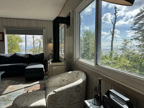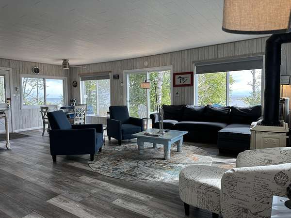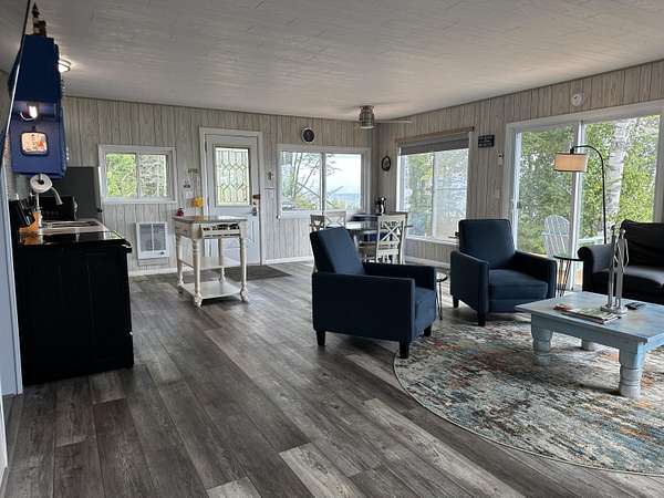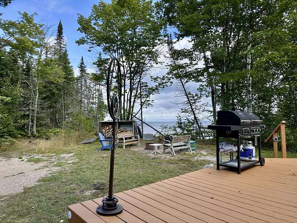 Cabin on Lake Superior's Whitefish Bay! 2+ acres with 300' of pristine frontage, elevated views and a stairway leading down to the shoreline, secured by a stone seawall. The 3BR/1BA cabin has been beautifully updated with new flooring, windows, remodeled kitchen and bath, modern appliances, and efficient heating and cooling for year-round comfort. The open concept living, dining, and kitchen areas showcase stunning water views, while the spacious deck is perfect for relaxing or entertaining. A rustic original log cabin adds potential as a guest space, and the new 50' x 32' pole barn provides excellent storage for vehicles, boats, and recreational gear. Private and secluded yet close to Paradise, this property combines new updates with classic charm. Create lasting memories on the Lake.