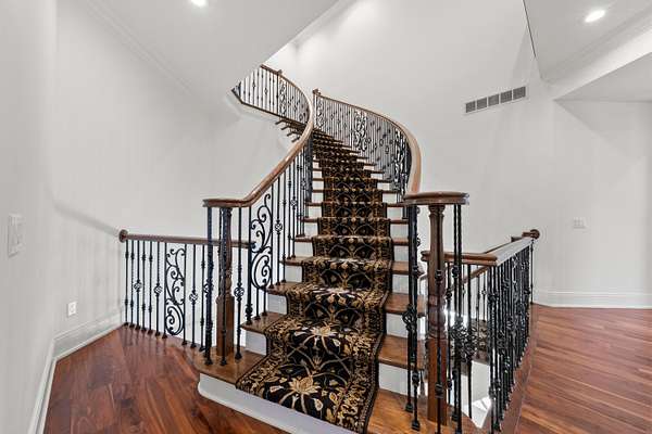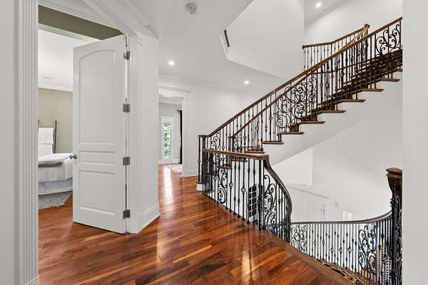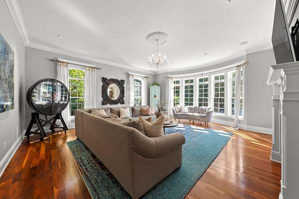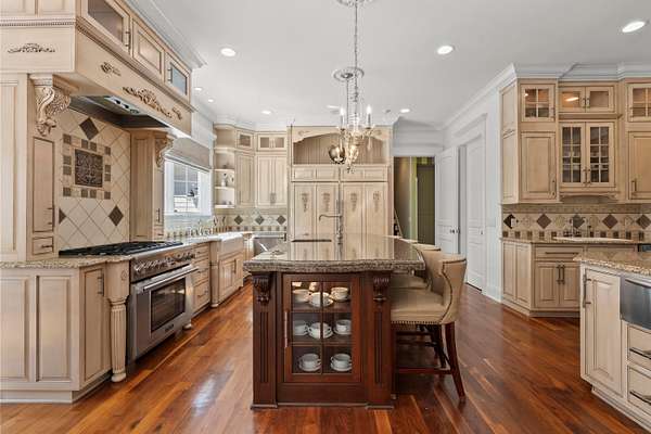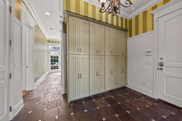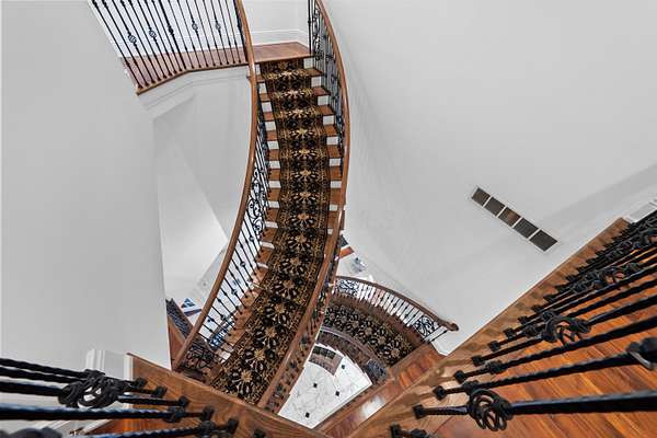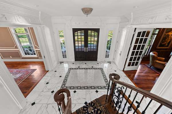 Timeless Georgian architecture on nearly three acres in a private cul-de-sac. This impressive estate begins with ten-foot tall walnut double entry doors and a porte-cochere. The home offers over 10,000 square feet of thoughtfully designed living space, including a separate in-law or au pair suite. It begins with imported Italian marble and an expansive open staircase that sets the tone for the home's impressive scale.