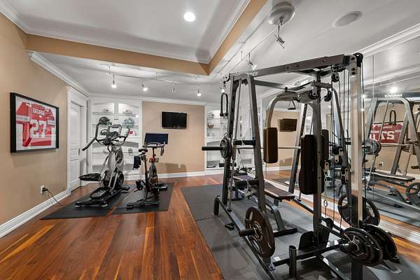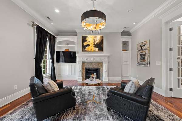 Recent updates include a new roof and brand-new interior and exterior paint. The property is designed for both comfort and function, with spacious living areas, five gas log fireplaces, and quality finishes throughout. Potential second office on the first floor overlooking the pool deck and scenic backyard. Current fitness room has egress windows and could be a seventh additional bedroom.