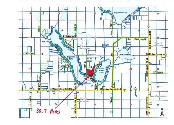 Est $2,555/moIn rural Polk County, in Georgetown Township lies a beautiful 30.7 acre parcel overlooking Big Blake Lake. The property consists of 50% wooded and 50% tillable. The fish species in Big Blake Lake are Musky, panfish, Largemouth Bass, Northern Pike and Walleye. The property is zoned both Residential and Residential-Agricultural 5. You can develop it, build on it, or hunt on it. Possible Owner Financing!! The rent from the tillable more than pays the taxes. Only 75 minutes to the Twin Cities!