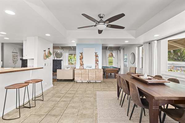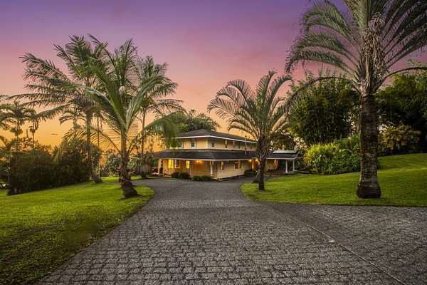 This exceptional Holualoa estate presents a rare opportunity to acquire a high-performing, fully furnished residential hosting property with documented income history and extraordinary lifestyle appeal. Designed for both luxury living and investment performance, the estate delivers scale, flexibility, and long-term value in one of Kona's most sought-after communities. The main residence offers 3,673 sq ft with 6 bedrooms and 3 bathrooms, providing expansive living spaces ideal for hosting and extended stays. A permitted ohana (~800 sq ft) includes a private kitchen and full bathroom, while two additional detached unpermitted apartments, create outstanding versatility. The property spans 5 acres of agricultural land with an active AG designation on a 10 -year renewal cycle, offering potential for lower property taxes, a substantial financial advantage. Outdoor living is elevated by two resort-style pools connected by cascading waterfalls with natural lava rock coping, a shallow keiki pool, and a deeper main pool, along with a serene koi pond and waterfall welcoming you at the front entry. Mature tropical landscaping features banana, star fruit, orange, lime, lemon, coconut trees, and royal palms lining the driveway. Adding to the property's uniqueness are 20 friendly sheep and one exotic mature mouflon sheep, creating a truly memorable estate experience. Located in the heart of Kona coffee country, the surrounding properties remain primarily agricultural, preserving peaceful open views, ocean vistas, and breathtaking Pacific sunsets. Just 10 minutes from downtown Kona and 20 minutes from Kona International Airport, the estate offers exceptional privacy without sacrificing convenience. Professionally furnished by 1584 Design (July 2023) and meticulously maintained, this is a turnkey offering with proven performance, significant tax advantages, and a lifestyle