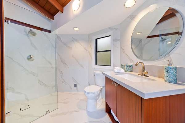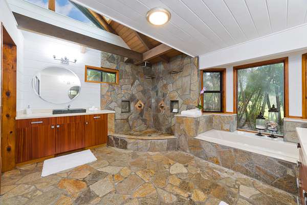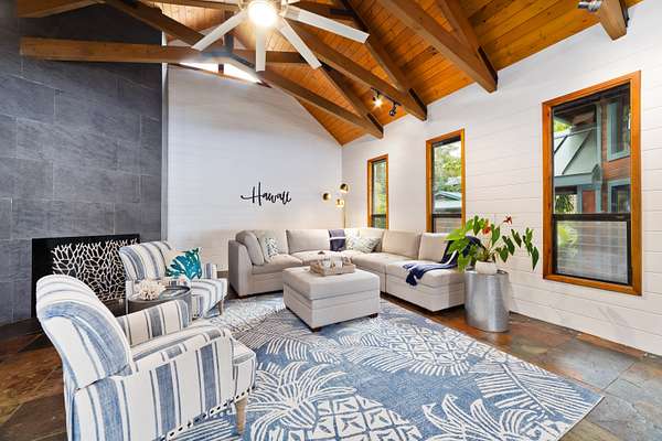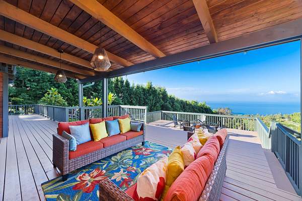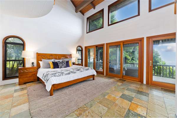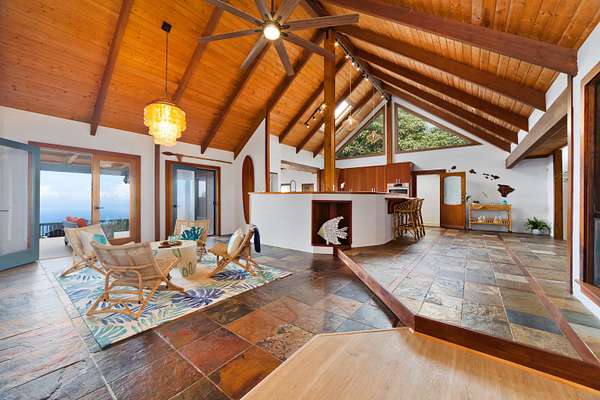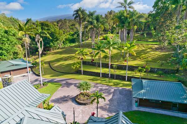 This exceptional estate stands as one of the crown jewels of Kailua Kona-an irreplaceable legacy property offering privacy, artistry, and an island lifestyle. Set on five acres of lush tropical foliage, this 6,107 sq. ft. architectural masterpiece captures commanding ocean and coastline views and showcases timeless Hawaiian craftsmanship reimagined through a multimillion-dollar renovation. Enter through historic wrought iron gates and drive past hand-built rock walls, sweeping staircases, and a private tree tunnel that opens to paradise. The estate includes three distinct structures: a grand main residence, a charming Ohana home, and a guest suite or office/studio within the carriage house. The main home offers over 2,500 sq.ft. of covered and open lanais designed for seamless indoor-outdoor living. Inside, soaring ceilings, embedded rock planters, Koa wood trim, and a falling-rock shower in one of three primary suites honor the home's original artistry. Every bath and both kitchens have been fully redesigned with mahogany cabinetry, waterfall quartz counters, and commercial-grade stainless appliances. Newly added architectural elements-tribal-carved details and live-edge Monkeypod shelving-enhance the home's natural beauty. Privately gated grounds feature extensive rockwork, lush tropical landscaping, a volcanic riverbed that flows with the rains of Hualalai, citrus and rainbow eucalyptus, and a large level field ready for coffee or tropical crops. Professionally decorated and offered fully furnished, every detail has been curated-from imported French coffee presses to a hand-carved Thai prayer table. This one-of-a-kind property invites you to create a lasting legacy for generations. County square footage and assessed value are being updated to reflect recent renovations. Information herein may contain inaccuracies and is provided without warranty. Buyers and agents to independently verify all information deemed material.