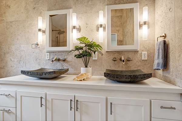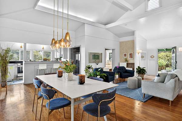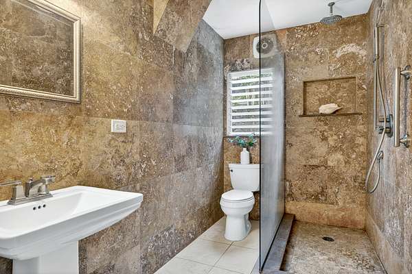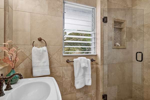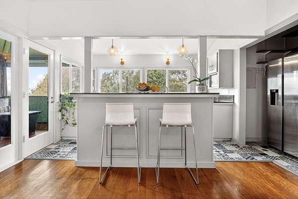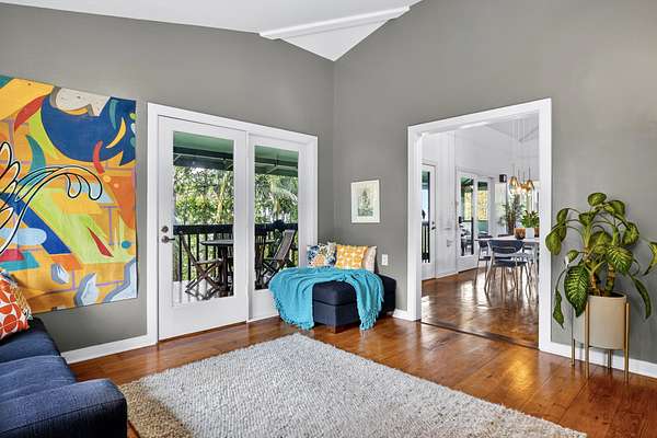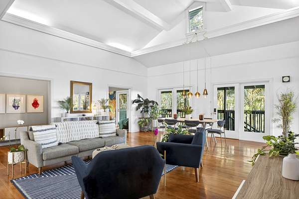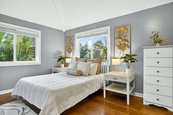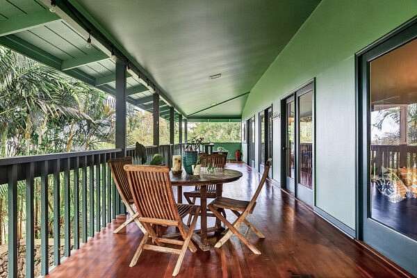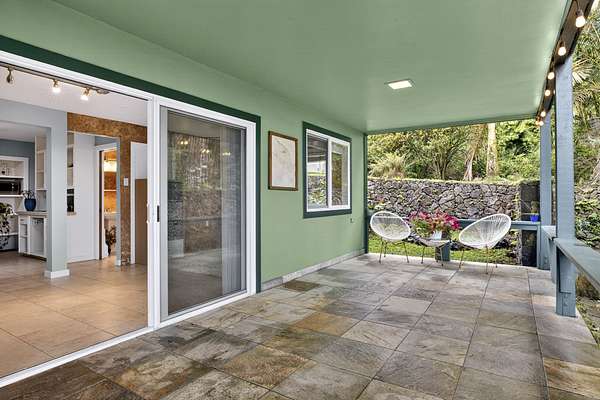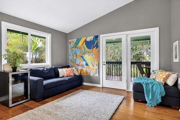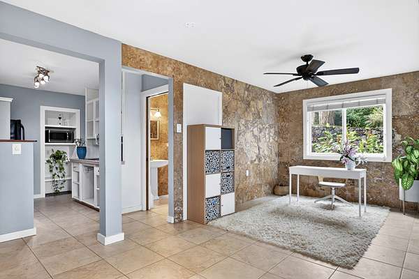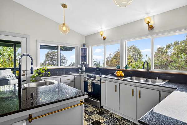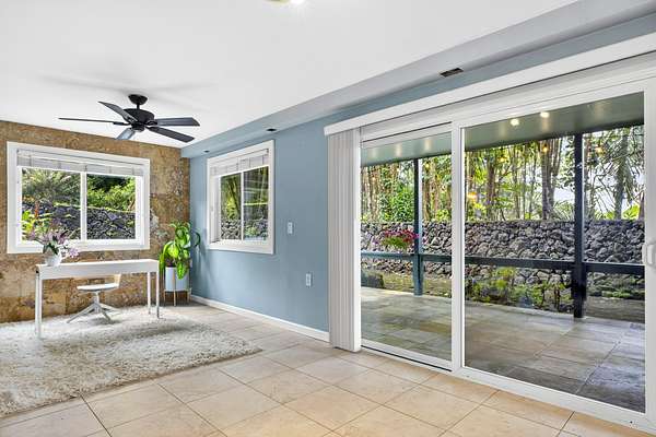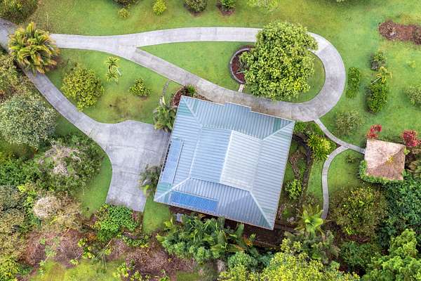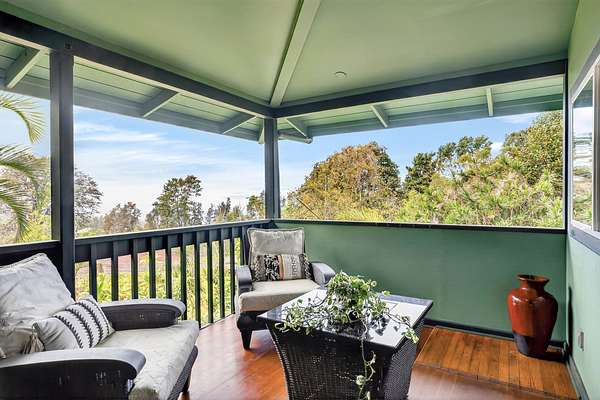 Feel the Serenity as you enter this desirable 5 Acres Holualoa Home just north of Kona, a private Sanctuary designed for your Hawaii lifestyle. Beautifully modern, thoughtfully updated 3 bedrooms, 3 bathrooms, a versatile private Den or 4 bedroom. A separate Ohana, Hot Tub Gazebo, solar/photovoltaic systems for energy efficiency. Natural light pours into the expansive open-concept living and dining area, warm wood flooring and generous space create an inviting atmosphere. This stunning interior flows seamlessly onto a large covered Lanai, perfect for sunset dinners and peaceful moments surrounded by lush tropical beauty and sweeping ocean views. The refreshed kitchen is stylish and functional, featuring refinished cabinetry, striking Mosaic flooring and brand-new appliances, including an induction stove, refrigerator and dishwasher, a true centerpiece for everyday living. The primary suite is a calming retreat overlooking vibrant Hawaiian gardens, complemented by a beautifully renovated bathroom with elegant wall-to-wall limestone, refinished cabinetry and custom-designed walk-in closet. The Second bedroom with a private bathroom, walk-in closet and providing exceptional comfort. A spacious Den or 4th bedroom includes a Murphy bed and opens onto a Large covered Lanai with ocean views. Downstairs, a Private one-bedroom Ohana adds outstanding versatility, complete with a kitchenette, Italian tile, bathroom, large dining area and generous covered Lanai overlooking a charming garden framed by Lava Rock walls ideal for guests or Rental potential. Outdoors, embrace the island's indoor-outdoor lifestyle, rare tropical showcase with over 40 exotic edible landscaping including blood orange, Meyer lemon, Tahitian lime, Kaimana lychee, tangerine, plum, Fig, avocado. A thatched garden Shed, Greenhouse, raised garden beds. Additional highlights include two-car garage, a substantial covered workspace and quaint wine room. Your island sanctuary is Move-in ready.