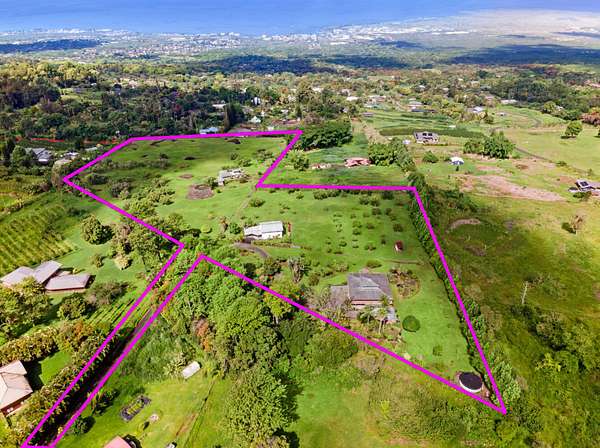 RARE HOLUALOA ESTATE - NEARLY 14 ACRES | AGRICULTURE | MULTI-HOME Poised just above the heart of Kailua-Kona in Holualoa's storied coffee belt, this rare estate offering spans nearly 14 acres across three TMKs, presenting a unique opportunity for agriculture, multi-generational living, or possible division of acreage making it not only a private sanctuary but a potential investment. Encompassed by 11 acres of olive orchards, the grounds are also home to a curated collection of tropical and subtropical trees including macadamia, three types of avocado, mandarin orange, Meyer lemon, lime, lychee, mango, pineapple guava, papaya, and other citrus varieties -blending sustainability with the island -a true farm-to-table lifestyle. A gated rock wall entry welcomes you to the property, which gives you a sense of elevated privacy. Once within this fully fenced estate you're surrounded by lush tropical landscaping, meticulously manicured grassy knolls, and an impeccable view to boot. The main home offers 2,849 SF of open-concept living with vaulted ceilings, UPPER 2 bedrooms, 2 bathrooms, full kitchen, plus 1,408 SF of covered lanais with sweeping ocean, sunset, and Kona coastline views. BELOW 2 Bedroom 1Bath, full kitchen plus screened lanai exercise room, and an art studio. The Ohana includes 816 SF, 2 bedrooms, 2 baths, a full kitchen, and a large lanai-perfect for guests or multi-gen living. The caretaker's cottage adds flexibility for staff or extra accommodations. Located just minutes from Holualoa Village's art galleries and cafes, and a short drive to Kona's pristine beaches, this RARE estate offers the ideal blend of privacy, elegance, and the natural beauty of the Big Island. A refined legacy property in the heart of Hawai'i Island. Best Features: Rare multi-TMK estate in one of the Big Island's most desirable locations Subdividing potential with favorable zoning Ideal for multi-generational family or guests Furnishings negotiable