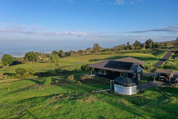 Welcome to your private slice of paradise in the highly desirable Holualoa countryside in a private gated community with little CC&Rs. This completely off-grid home is situated on 5.3 acres of Agricultural-zoned land. The fully fenced property features a newly built (2024) single-level home has panoramic views of the Kona coast and Hualalai mountain. The home features 3 bedrooms and 2.5 bathrooms with thoughtfully designed double-wall construction, concrete slab foundation, metal roofing, and a 30,000 watt fully owned photovoltaic system! The open layout of this home is complemented by covered lanai spaces, ideal for enjoying cool mauka breezes and peaceful surroundings. This property provides endless possibilities for farming and gardening or creating your dream homestead. With ample usable acreage, privacy, and room to expand, it's a rare opportunity to own a large parcel in Holualoa. Seller has spent the last few years planting exotic fruit trees and making most of the acreage mow-able. Located just a short drive from Kailua-Kona, you'll enjoy the perfect balance of privacy and convenience, with easy access to town, beaches, and amenities.