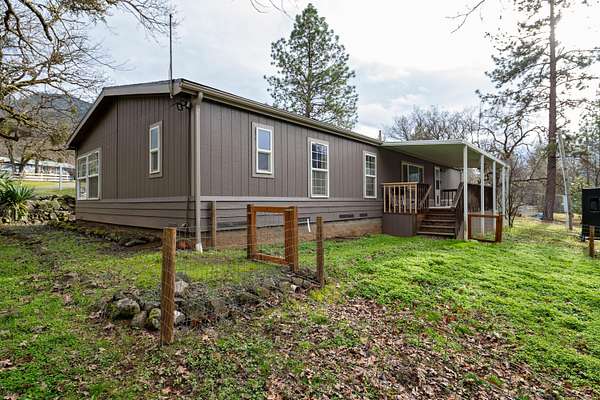 Est $2,242/moNestled in the heart of the Applegate, this well-maintained manufactured home offers room to breathe on 2.4 acres of usable land. Recent updates in 2025 include a new roof, fresh exterior paint and flooring in the kitchen area. The property features a fenced dog area, detached garage with workshop space and RV parking with electric hook-ups. Peaceful setting close to shopping, schools and Valley View Winery -perfect for those seeking space, privacy, and convenience.