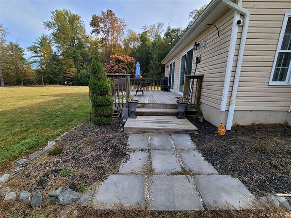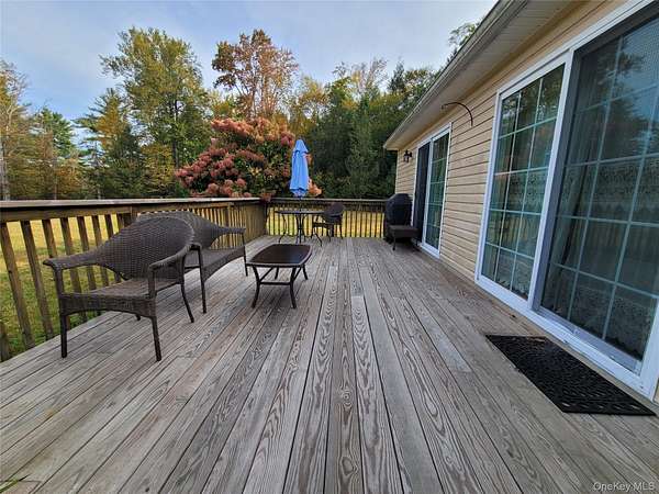 Situated on a quiet country road on 3.31 acres of mostly cleared and level land sits 75 bernsley road, a 3 bedroom 2 full bathroom saltbox contemporary. The home has an open floor plan with vaulted ceilings including two sky lights allowing lots of natural light. Main level features open kitchen with stainless appliances including dishwasher, living room with wood burning fireplace along with sliders leading to front porch. Full bedroom and full bathroom on main level along with washer dryer connections. Upstairs features 2 additional bedrooms with shared access to second full bathrooms, each room with accessibility to bedroom. The larger of two rooms has Juliette balcony overlooking the back yard. The home has recently had a new tankless water heater installed, along with new well pump. Propane heating system, wireless video and alarm system. The home is being sold fully furnished, along with contents of shed which include ride on mower and atv with snow plow and more. Home is short distance from rock hill for access to 17 along with grocery store and numerous restaurants. Short distance to indoor water park and holiday mountain ski hill along with the New Golf course at the casino.