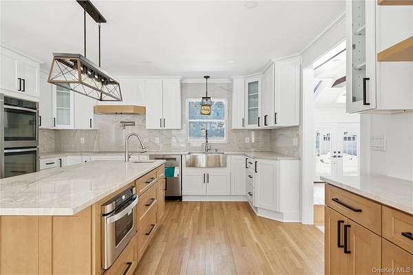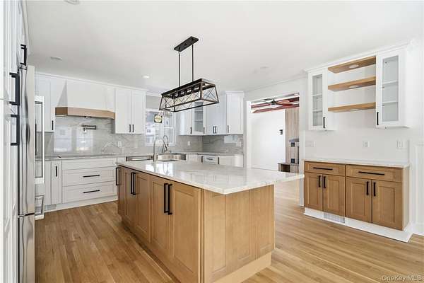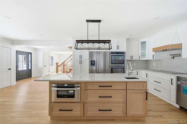 Welcome to Courtside Manor! A home that instantly quiets the outside world and replaces it with light, balance, and possibility. Thoughtfully renovated from top to bottom, Courtside Manor is a private estate designed for those who value craftsmanship, privacy, and lifestyle at scale. Every system and finish has been carefully curated so the home not only looks exceptional, but lives effortlessly. Sunlight pours through new Pella high-efficiency windows with wood interior finishes, illuminating beautifully finished maple hardwood floors and an open, breathable layout. Architectural details, including board-and-batten accents, elegant wainscoting, and vaulted and angled ceilings, add depth while maintaining a calm, refined aesthetic. The main living room is warm and inviting, anchored by a wood-burning fireplace and enhanced by a fully appointed wet bar with running water, wine cooler, and wine rack. The designer chef's kitchen features high-end Bosch appliances, Italian quartz countertops, a fully vented hood, and advanced features to help you become a chef. An expansive backyard extends the living space outdoors, creating a seamless indoor-outdoor flow. The primary suite offers a true retreat with an electric fireplace, spa-style bath with jacuzzi tub, and direct access to a private balcony overlooking the grounds. Bedrooms throughout the home are generously sized and flexible, suitable for restful retreats, workspaces, or guest accommodations. Bathrooms are finished with refined tilework and spa-inspired fixtures. The property has been comprehensively upgraded with a brand-new roof, central air conditioning, a Bosch high-efficiency electric heating system, a total of three HVAC zones (two in the main house and one in the pool house), new high-efficiency electric water heaters, and a brand-new sprinkler system. Outdoors, the estate unfolds into a private resort setting featuring a heated saltwater pool with concrete walls, vinyl lining, and a high-efficiency electric heating pump. A large sun deck and multiple seating areas surround the pool. The grounds also include an official-size tennis and basketball court also designed for pickleball, a five-hole putting green, and additional seating areas throughout. An outdoor kitchen is fully equipped with a pizza oven, barbecue with stovetop, double refrigerators, garbage disposal, and integrated storage. The cedar-shingle guest pool house features American quartz countertops, butcher block accents, its own HVAC zone, and a massive terrace overlooking the pool and grounds. The fully finished lower level expands the home's living space and is designed for entertaining and everyday function. It features a full bar, a bathroom, a dedicated laundry room, and versatile recreation space ideal for media, fitness, or hosting. Durable Hardiplank siding and timeless exterior detailing complete the estate. This is not just a renovation. It is a redefinition of how a home should feel. Bright yet grounded. Modern yet warm. Private without feeling isolated. A place where mornings feel lighter, evenings feel calmer, and every detail supports the life you are building next. Courtside Manor is not just where you live. It is how you live.