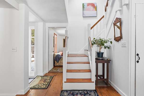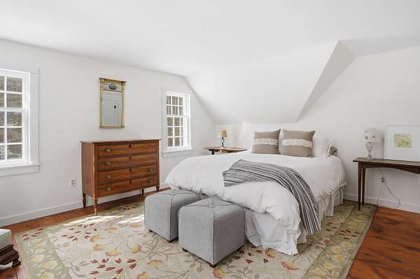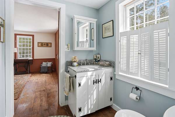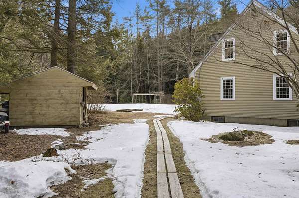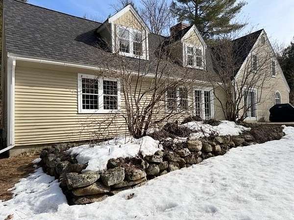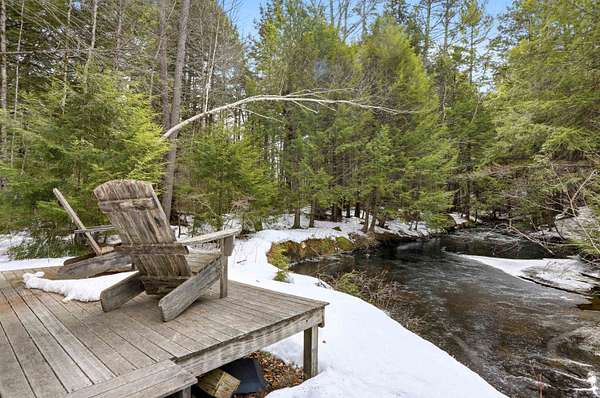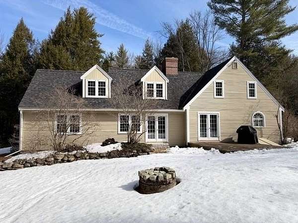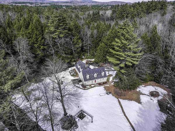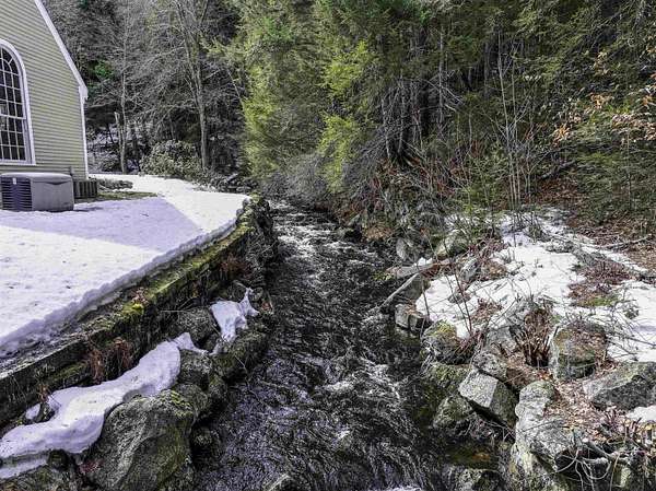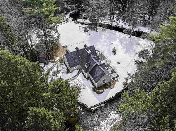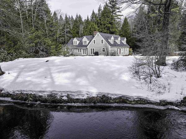 The Sounds of Nature surround this reproduction Cape Cod-style home, privately nestled within the Oxbow of Center Brook on 14.8 acres. This truly special setting offers long waterfrontage, walking trails, an expansive yard, and even a cozy cabin! The main house features custom windows that bring natural light into spacious living areas. Its versatile floorplan easily accommodates home offices, bonus rooms, and/or flexible living arrangements. The first-floor primary suite includes a full bath & first floor laundry in abutting hall. The eat-in kitchen has newer appliances, wood counters and patio doors that open to the south facing exterior deck. The living room blends comfort with an understated elegance and leads into a spacious dining room highlighted by a full wall built-in bookcase and cathedral ceiling. Upstairs you will find three bedrooms, 1.5 baths, and a loft currently used as an office. The lower level has a family/playroom with two storage closets. Additional features such as a whole house generator and central AC provide year-round comfort & peace of mind. With over 3000SF there is space for everyone to enjoy brook views & sounds from almost every room! Wood floors and paneling add warmth & character throughout. This private setting is close to the town center & schools and only 20mins to Concord, 30mins to Manchester. 10mins to Pats Peak and Lake Horace for even more outdoor recreation. OPEN HOUSE, Friday, March 27th 4-6pm, SAT. March 28nd, 10am-12pm and SUN, March 29nd, 10am-12pm.