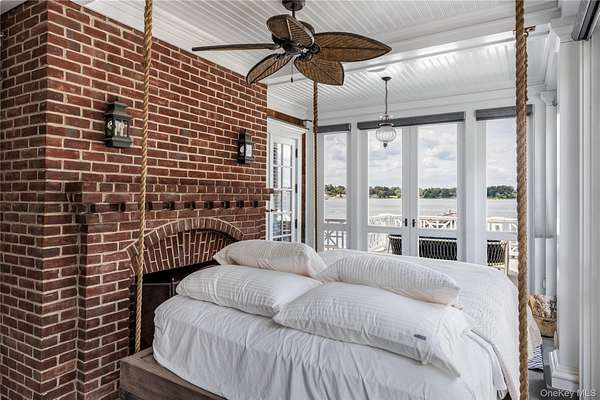 The primary suite is a true retreat, offering a spa bath, radiant heated floors, and an indoor-outdoor lounge for savoring the waterfront setting. Above, a third-floor widow's walk rooftop terrace crowns the residence, delivering the ultimate vantage point with panoramic water views and endless sunsets.