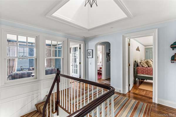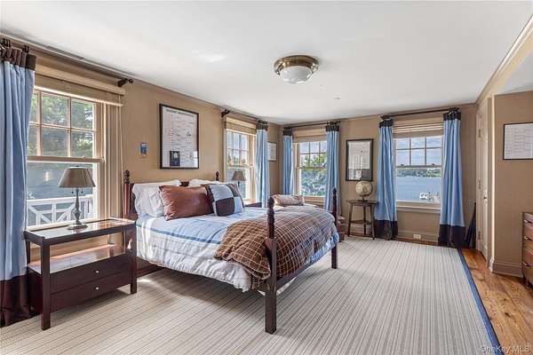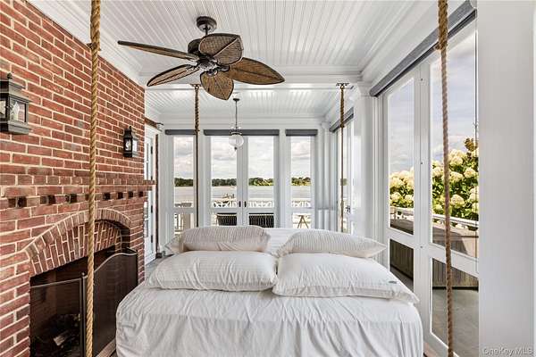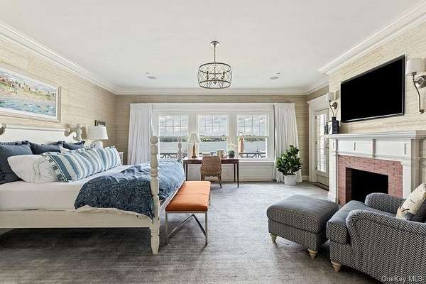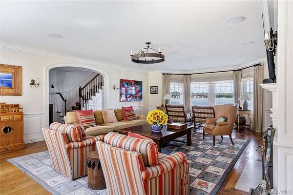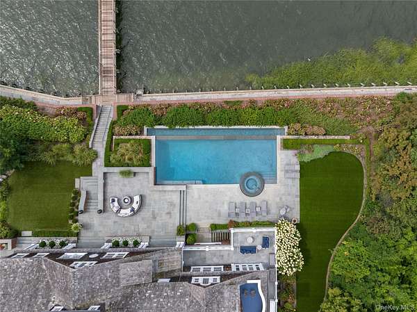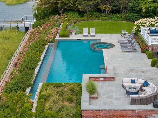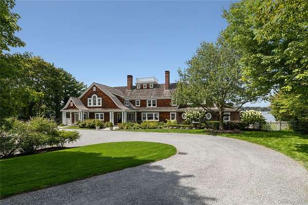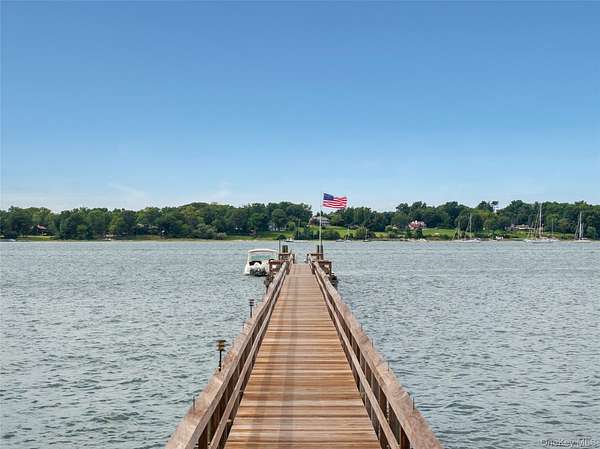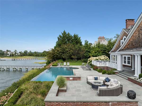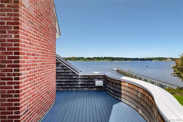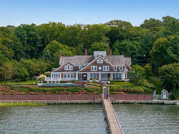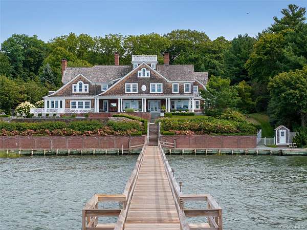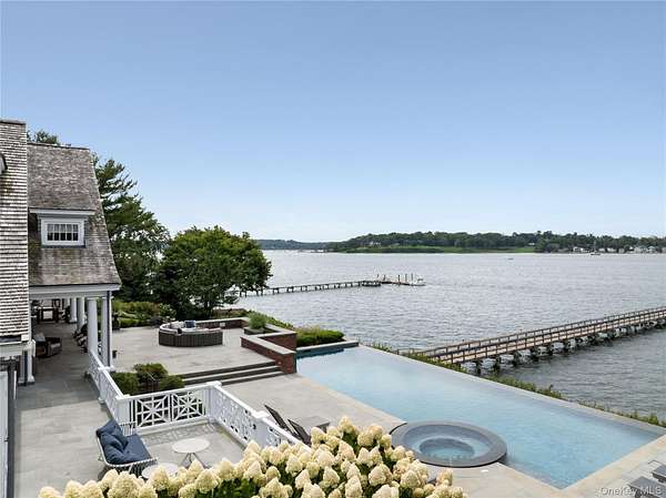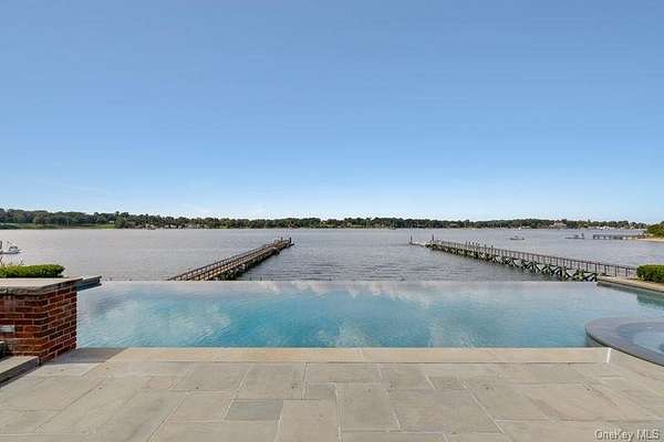 Direct Waterfront Estate with 300+ Ft Deep-Water Dock. Built in 2006 and crafted by renowned architect Oliver Cope with landscape design by Edmund Hollander and Kean Development, this 10,000+- sq. ft. waterfront estate offers 6 bedrooms, 5 full and 2 half bathrooms, and sits on 2.35 acres of prime bay front with sweeping western exposure and panoramic views over Oyster Bay and Centre Island. At the water's edge, a private 300+ ft deep-water dock (rebuilt in 2010) provides rare direct access for boating and yachting, anchoring the property as one of the most desirable on the North Shore. Expansive bluestone patios, manicured grounds, a covered patio, and a resort-style infinity-edge pool with spa capture breathtaking sunsets that paint the bay in spectacular color each evening. Inside, every detail has been elevated - from extensive custom millwork to soaring ceiling heights. A chef's kitchen with a massive marble center island flows into both grand entertaining spaces and intimate sitting rooms. A stunning library with cathedral ceilings opens to a large balcony and a private home office. Throughout the home you'll find six fireplaces, smart home technology with surveillance, a full-house generator, and bedrooms with private balconies overlooking the water. The primary suite is a true retreat, offering a spa bath, radiant heated floors, and an indoor-outdoor lounge for savoring the waterfront setting. Above, a third-floor widow's walk rooftop terrace crowns the residence, delivering the ultimate vantage point with panoramic water views and endless sunsets. The full finished lower level offers a resort-quality experience with a fitness center, sauna, steam room, cabana bath/changing room, kitchenette, and media room. A detached four-car garage completes this world-class estate - a rare offering that combines architectural pedigree, modern luxury, and unmatched direct waterfront living in one of Long Island's most coveted bay front settings.