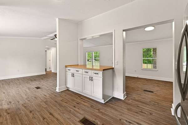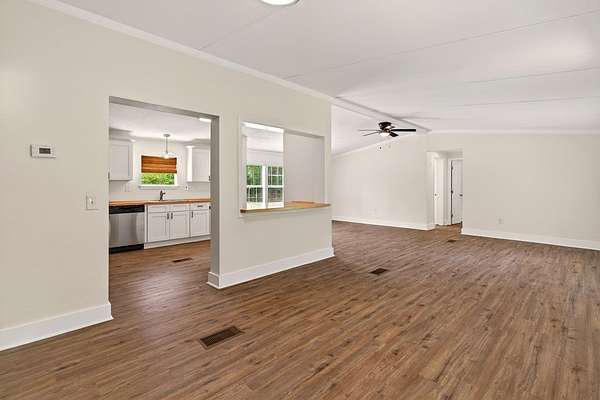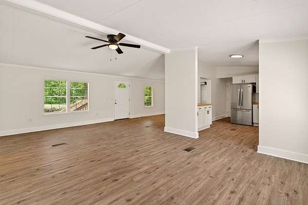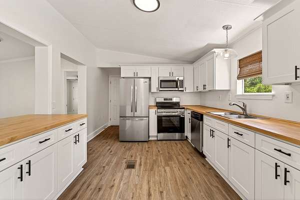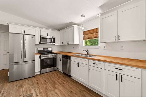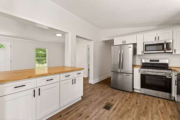 Freshly remodeled and move-in ready, this beautifully updated mobile home sits on a peaceful 2-acre lot offering privacy and space to enjoy country living. Step inside to a bright, open floor plan with new vinyl plank flooring throughout the spacious living and dining areas, perfect for entertaining or relaxing. The kitchen features stylish updates, stainless steel appliances, ample cabinet space, and warm butcher block countertops. The split floor plan provides comfort and functionality, with a private master suite showcasing a large soaking tub, separate walk-in shower, and generous space to unwind. Outside, enjoy the charm of the inviting front porch and plenty of room for outdoor activities, gardening, or future additions. Surrounded by mature trees and open space, this property offers the perfect blend of modern updates and peaceful rural living. Don't miss this affordable, turnkey opportunity!