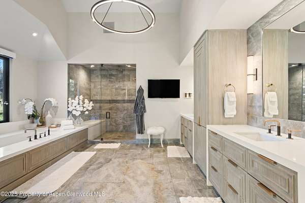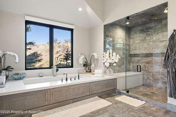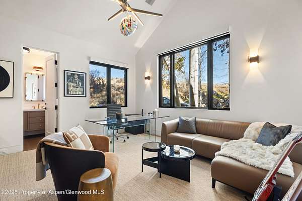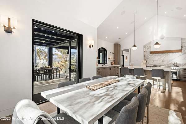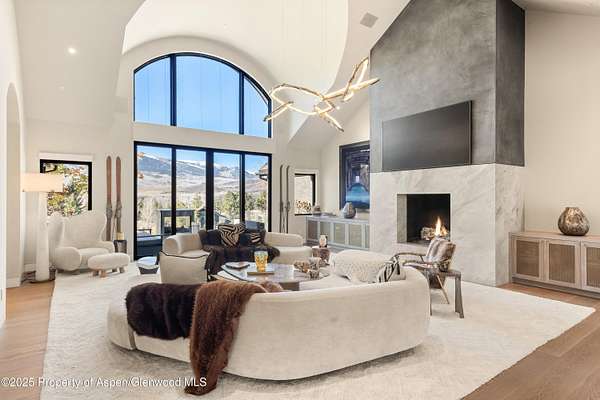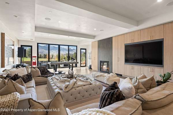Unparalleled Elk Mountain views from this exquisite contemporary estate featuring five luxurious suites, seven & two-half bathrooms, spectacular chef's kitchen with indoor & outdoor dining areas, den & generous size family-room outfitted with pool table, ping-pong table, bar & wine room. Impressive great room with floor-to-ceiling gas fireplace, vaulted ceilings and large glass doors and windows showcasing the amazing views. Primary suite is conveniently located on the main level with a huge bathroom, private balcony, indoor & outdoor gas fireplaces & custom walk-in closet. Complete with three car-garage and separate caretaker apartment. Moments from your favorite hiking trails, Aspen Institute, Music Festival and everything that downtown Aspen has to offer.
