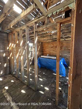 Water, Septic and Electric already on this more than 10 acre lot in Merna's desirable Jim Bridger Estates. Hunter's Cabin Dream or full time living, what once was a single family home is now an unfinished cabin on a foundation awaiting your completion. Roof would be first. Originally built in the early 1900s in Bondurant and moved to Daniel, this single story structure feels loaded with history. If only the walls could talk. Not interested in the structure? Build your dream home further up the property. Rare to find lots for sale with water, septic and electric already on site. Electric and Septic dump for an RV as well. Multiple lumber packages included in the sale that were intended to add a second story and expand the original cabin. Property is being sold ''As Is.''