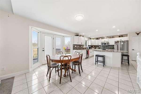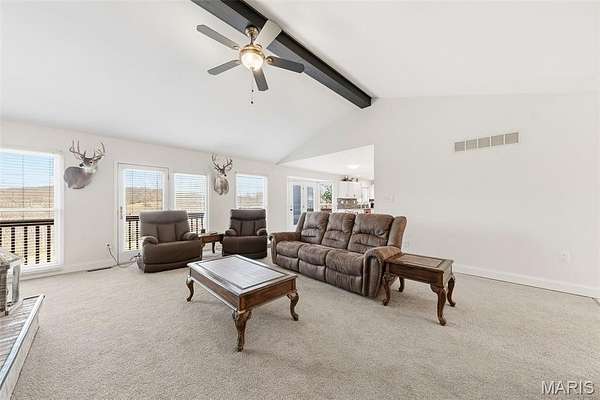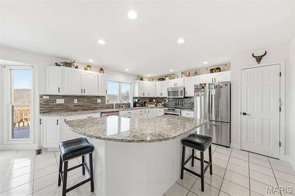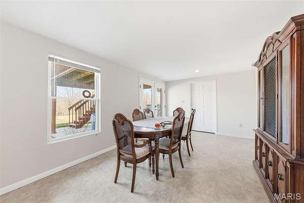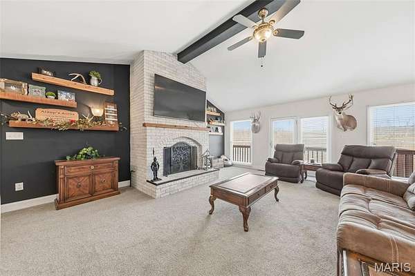 Spacious ranch home situated on 4.99 acres offering a blend of comfort and functionality. The main level features 3 large bedrooms and 2.5 bathrooms, along with a vaulted living room highlighted by a 2 full masonry wood-burning fireplace. The kitchen includes solid surface countertops and is complemented by both a formal dining room and a breakfast area. Main floor laundry adds convenience. The partially finished walk-out basement provides additional living space, including a media room, recreation room, den or potential 4th bedroom, and a full bathroom, along with ample storage space. Outdoor features include a deck off the back of the home and a lower-level patio, ideal for relaxing or entertaining. Additional improvements include a 3-car attached garage and a 25 x 46 shed/barn, offering excellent space for storage, hobbies, or equipment.