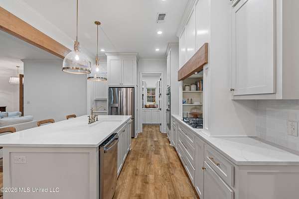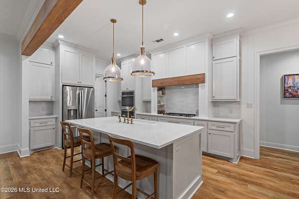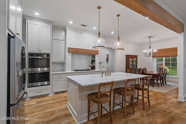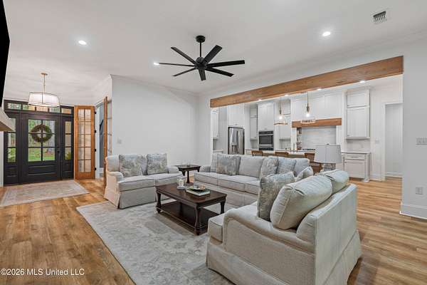 Nestled on 7.27 acres +/- just outside of the city limits of Petal, this like-new home gives you that ''wow, we need this'' feeling the moment you arrive. Peaceful, quiet, and just far enough off the road to feel like your own little world. Inside, it's bright, open, and made for real life. The kitchen steals the show (in the best way) with a huge island, double ovens, gas cooktop, stainless steel appliances, and all the space you need whether you're hosting a crowd or just making a quick dinner. It flows effortlessly into the living area so no one's ever left out. There's a dedicated office for work-from-home days, a dining space ready for holidays and get-togethers, and finishes throughout that feel clean, modern, and elevated. The primary suite? Total reset zone. Think soaking tub, walk-in shower, double vanities, and a closet that actually fits everything. Step out back and it only gets better. Wide open views, peaceful mornings, and plenty of space to entertain. And then there's the guest house: approximately 800 square feet with its own kitchen, living area, bedroom, bathroom, and laundry room - making this ideal for guests or family/friends visiting from out of town! You've got space. You've got privacy. You've got two homes on one property. This isn't just a house you look at... it's one you don't want to leave. Call today for your appointment!